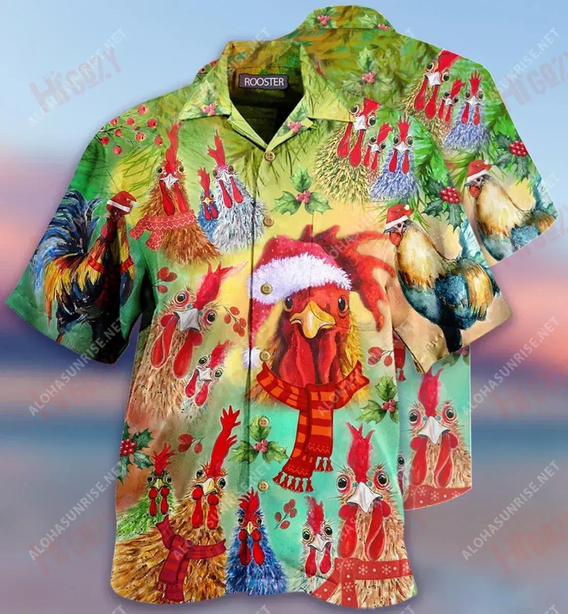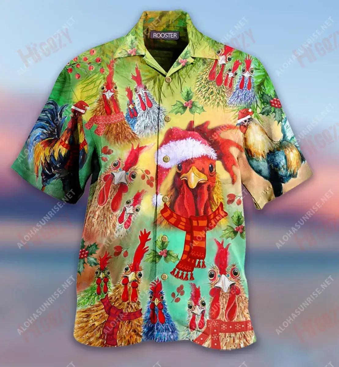 Rooster Merry Clucking Nollag Gearr Léine Haváís Caitheamh aimsire Muinchille Gearr Léinte Haváís is Fearr Patrún Léine Haváís, Bronntanas Léine Haváís, Bronntanas Nollag