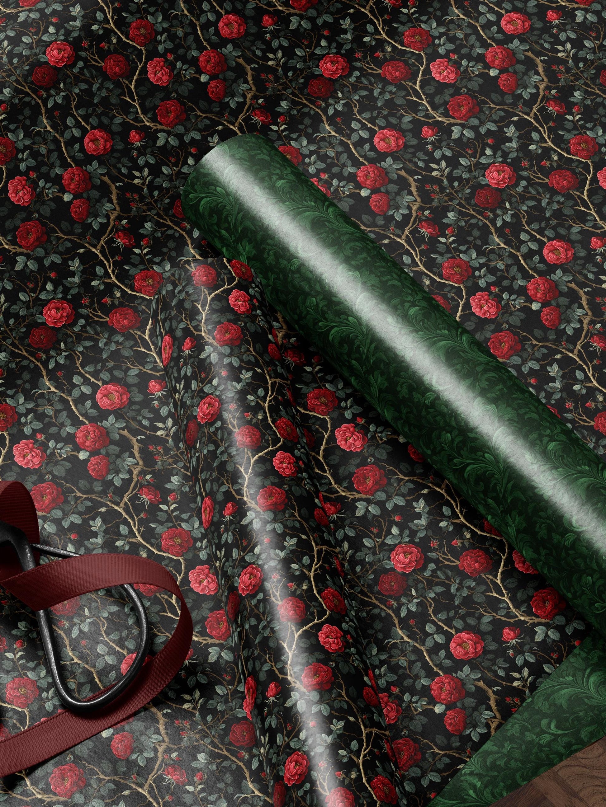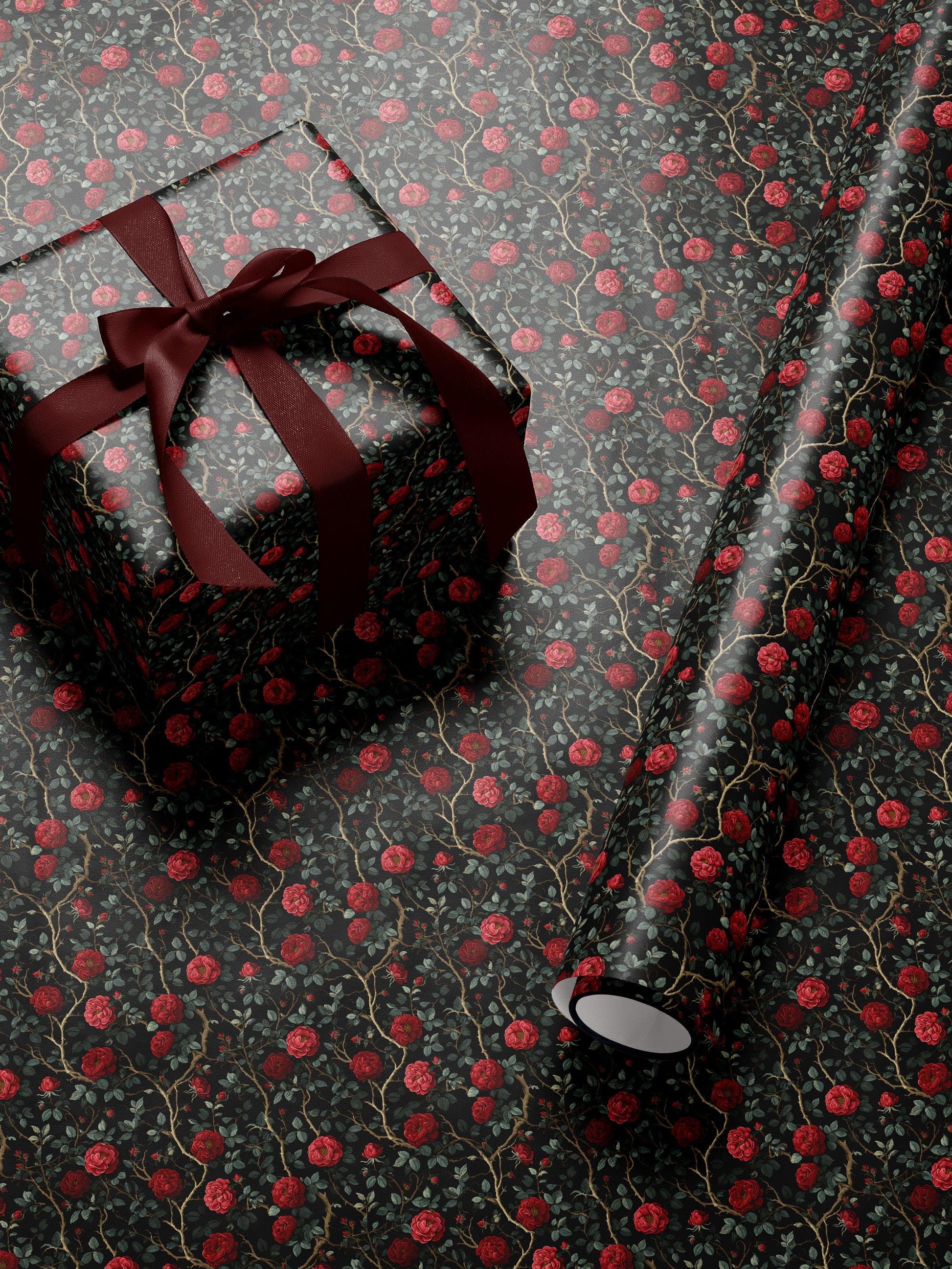 Rose Wrapping Paper Dark Floral Gift Wrap Gothic Party Decor Moody Floral Wrapping Paper Birthday Present Gift Idea Elegant Gifting Paper