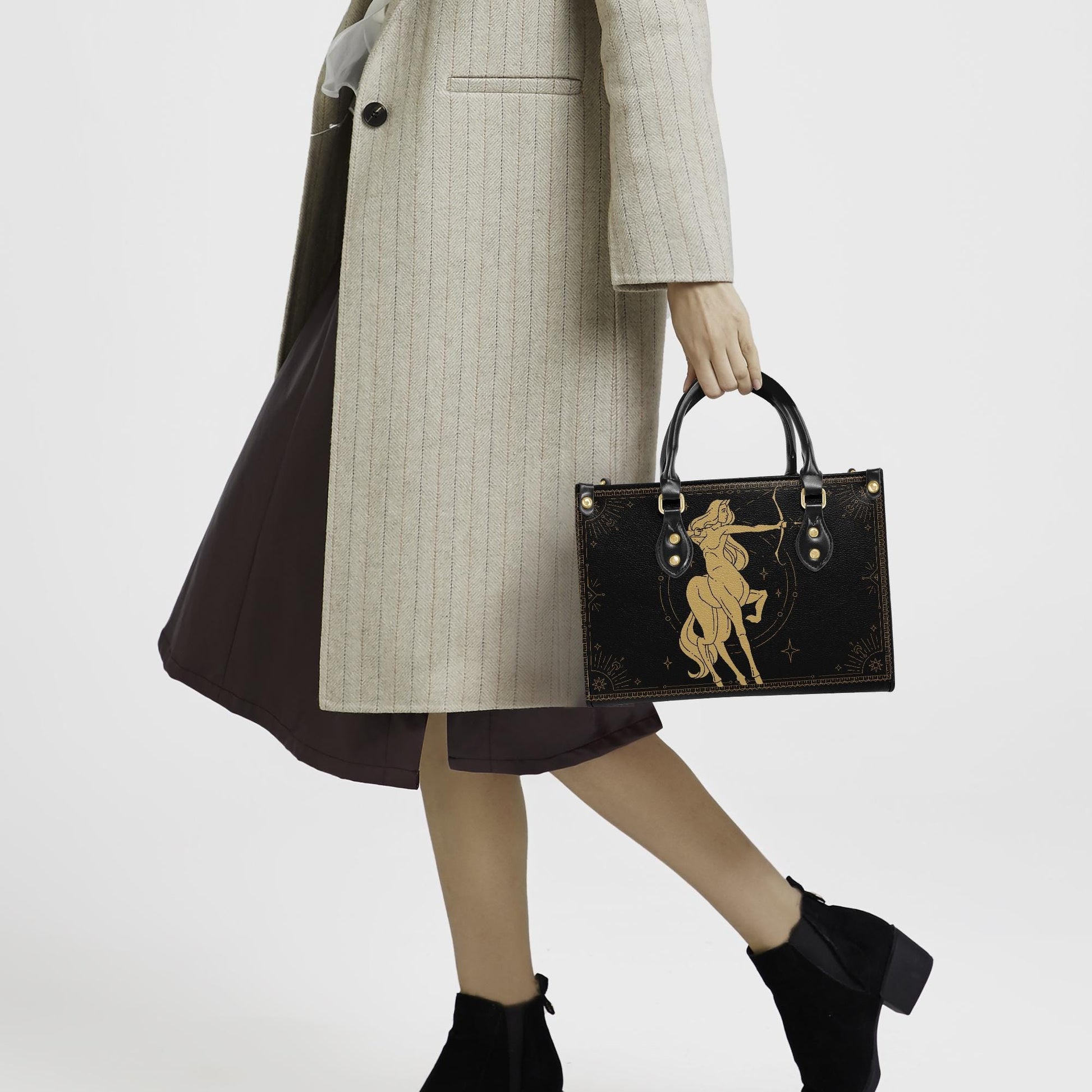 Sagittarius Zodiac Handbag | Celestial Archer Purse | Black Gold Astrology Bag | Mystical Moon Star PU Leather | Gift for Her