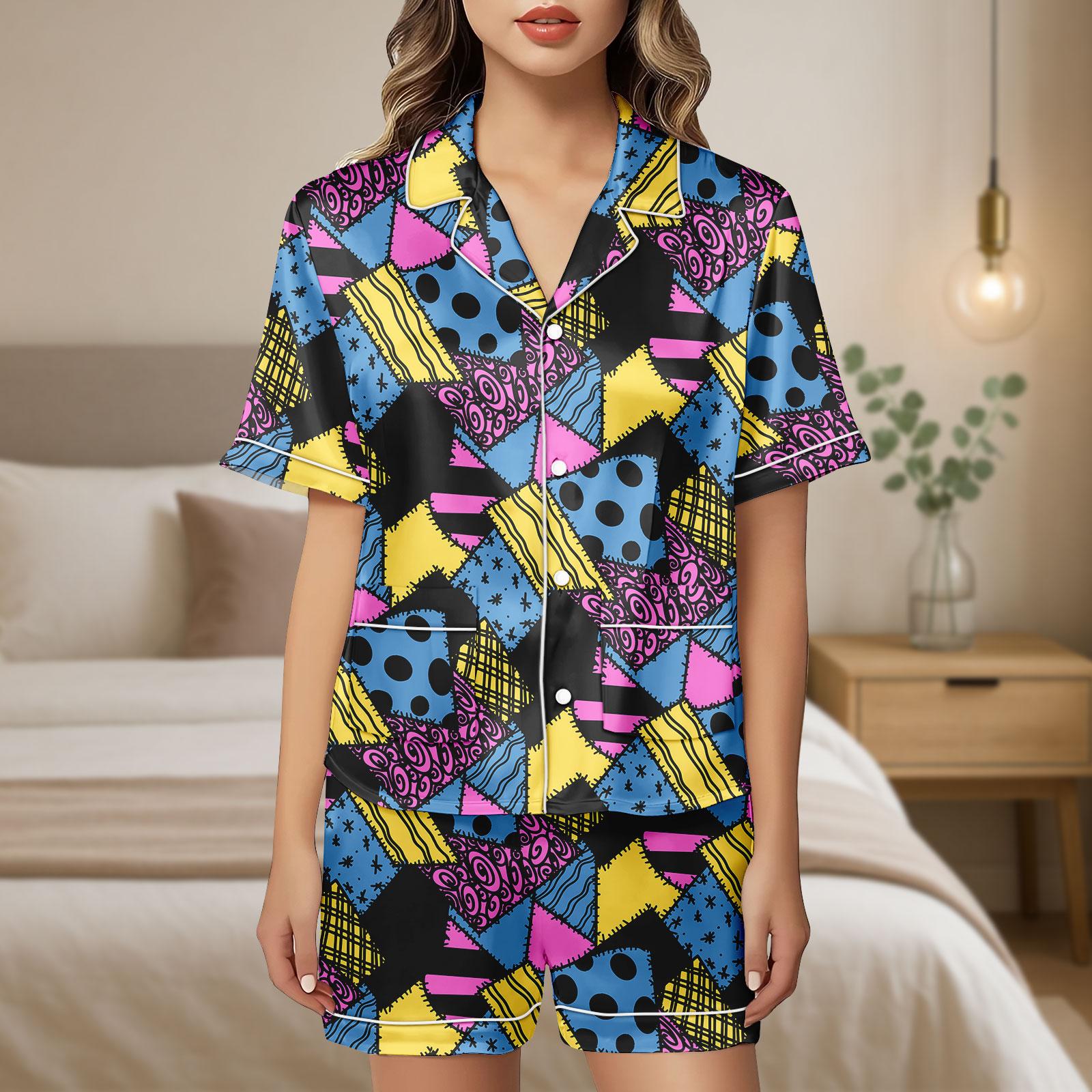 Sally Satin Pajamas Set, Nightmare Before Christmas Inspired Sleepwear, Halloween Cartoon Pjs, Satin Pajamas Set Gift