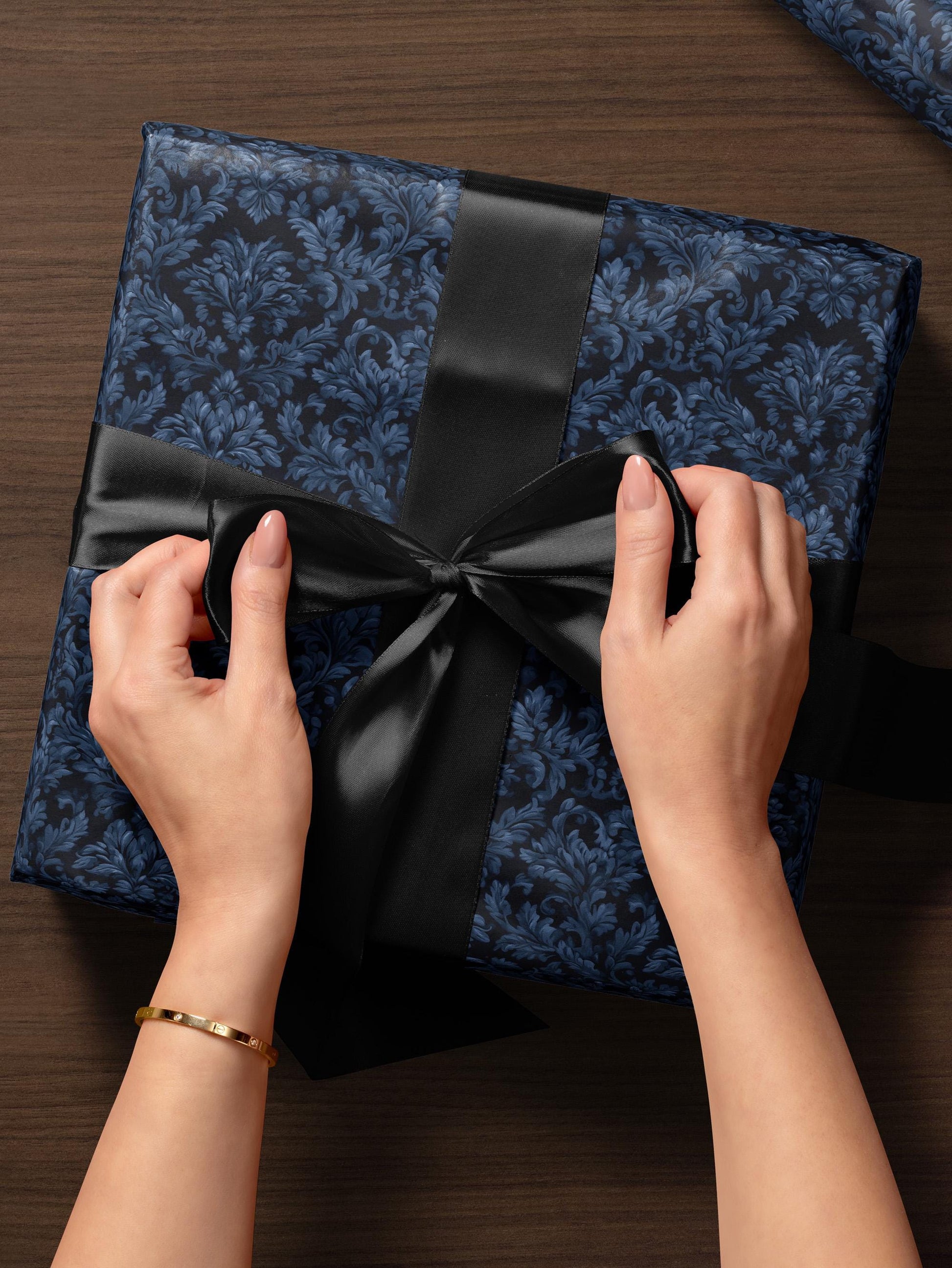 Sapphire Blue Wrapping Paper Blue Floral Gift Wrap Moody Flower Design Gift Wrap for Wedding Wrapping Paper Bridal Shower Gift for Bride