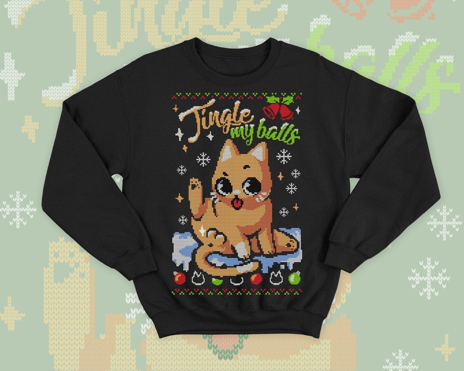 Sassy Cat Ugly Christmas - Cute kitty gift - Gingle my Balls sweatshirt - Merry Kiss my ass