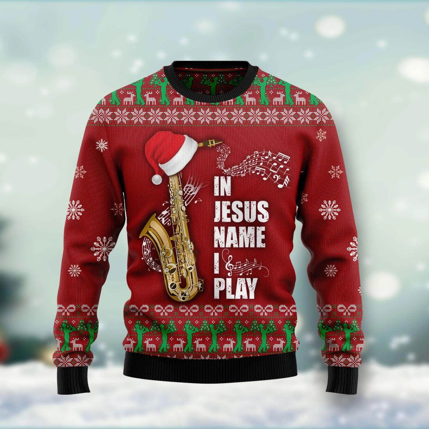Sacsafón In Ainm Íosa Imrím Geansaí Nollag Gránna, Bronntanas Nollag, Bronntanas Nollag 2024