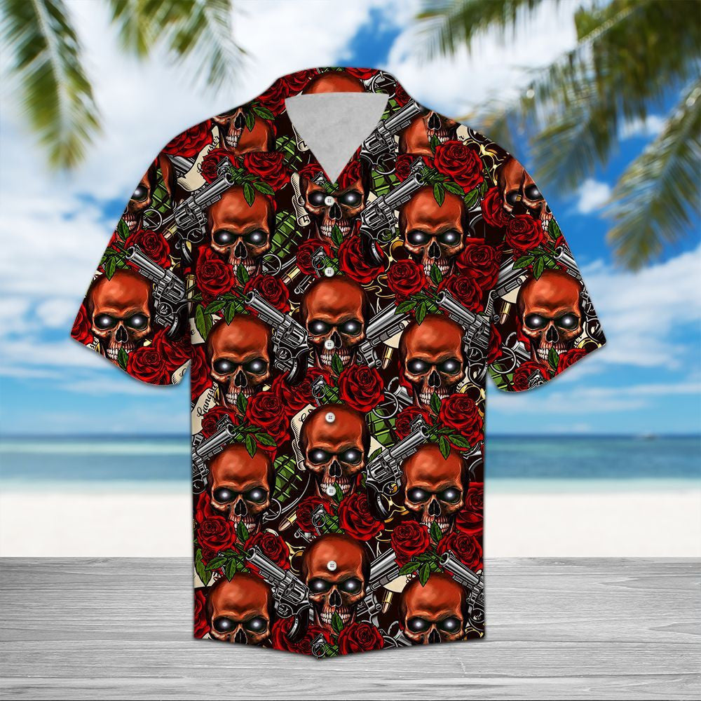 Skull Scary Le Gunna Agus Patrún Rós Dheirg Léine Haváís, Bronntanas Léine Haváís, Bronntanas Nollag