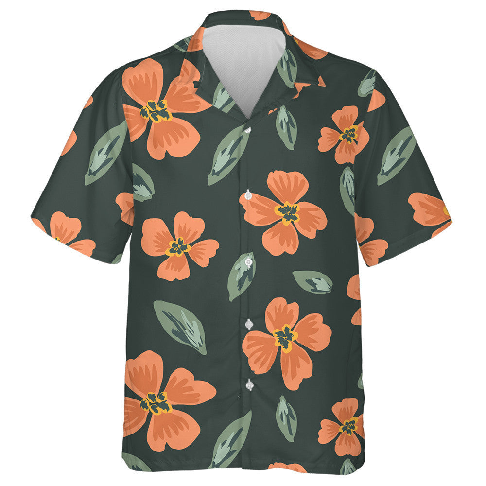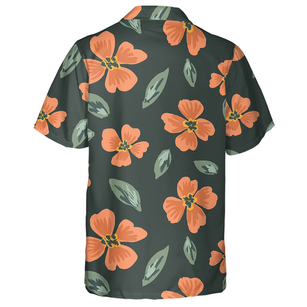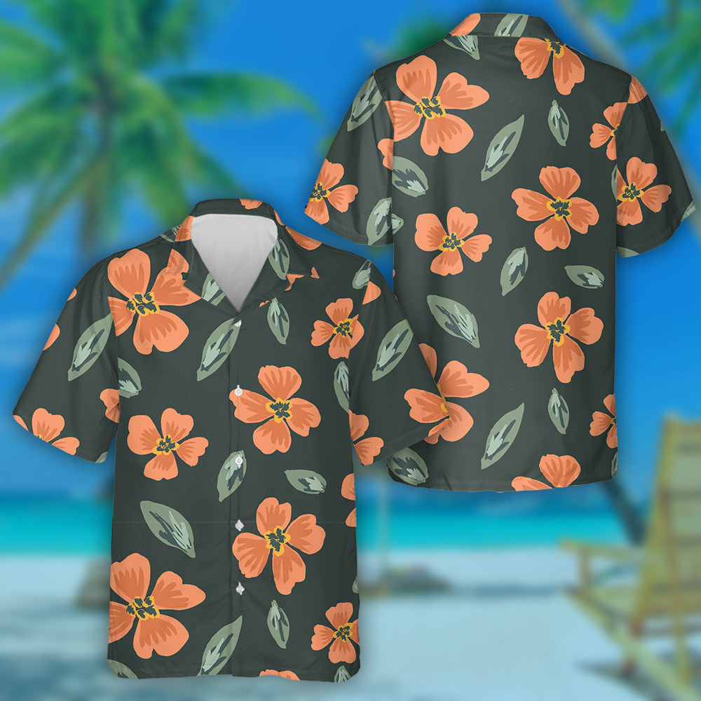 Bláth Oráiste Simplí Péinteáilte Agus Duilleoga Patrún Scaipthe Léine Haváís, Bronntanas Léine Haváís, Bronntanas Nollag