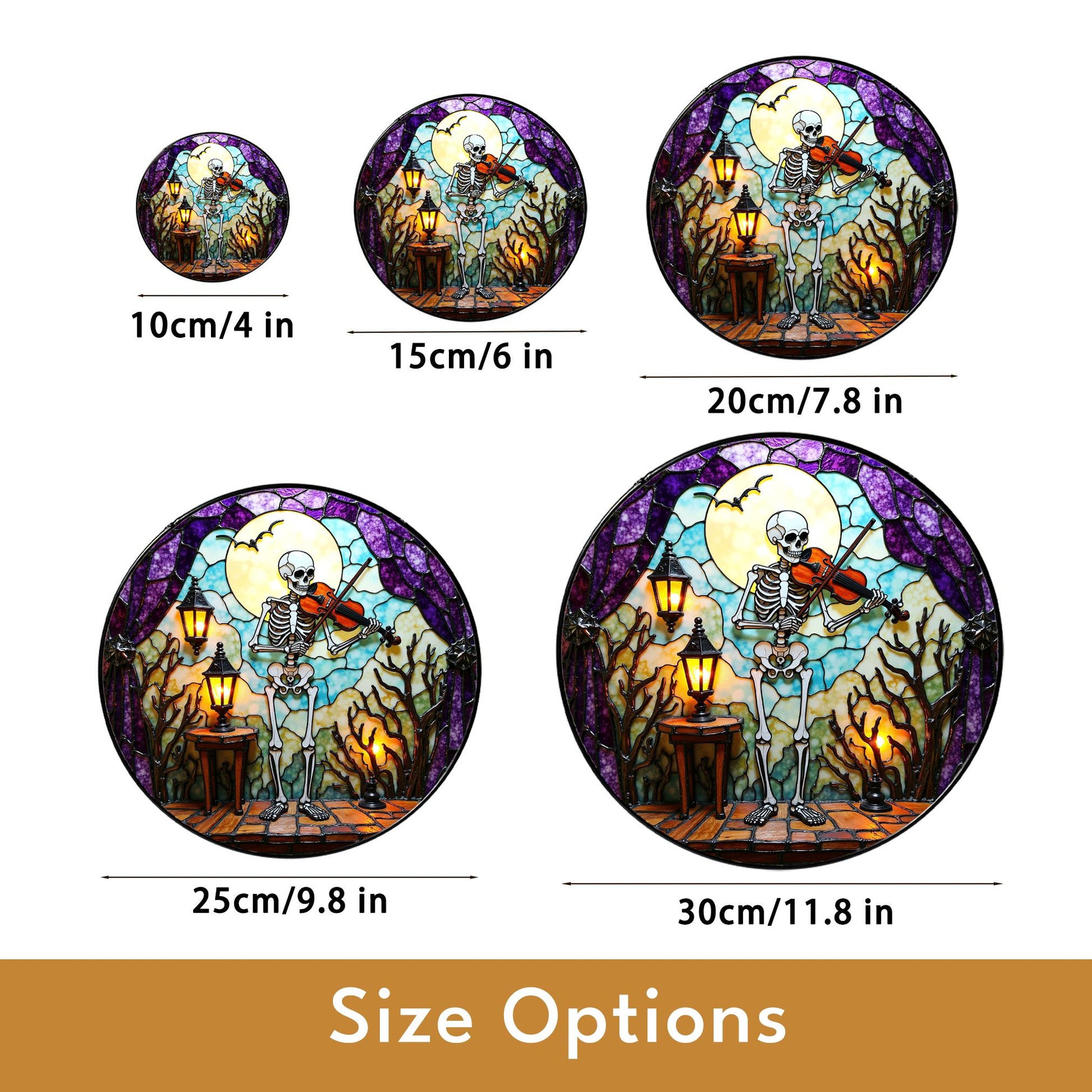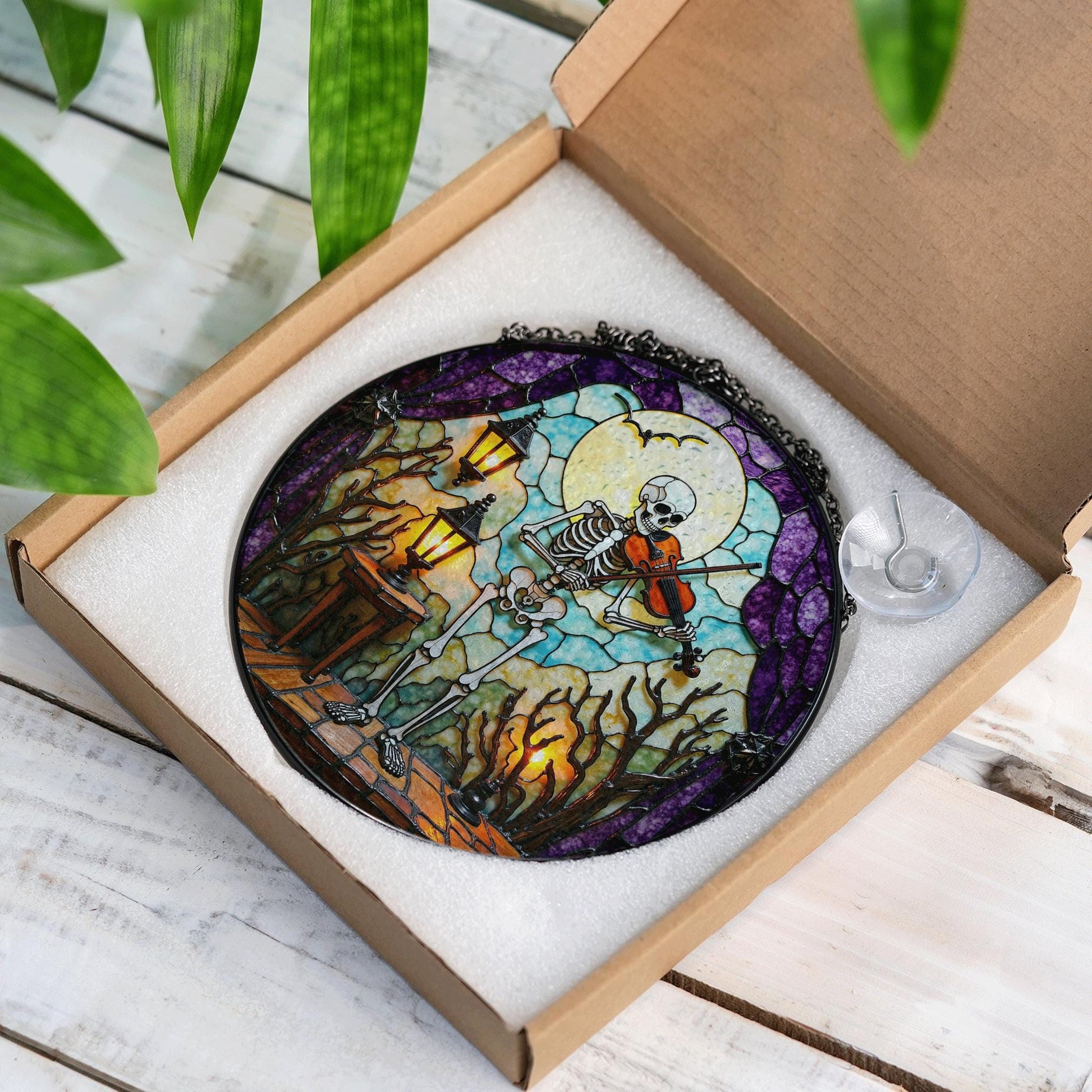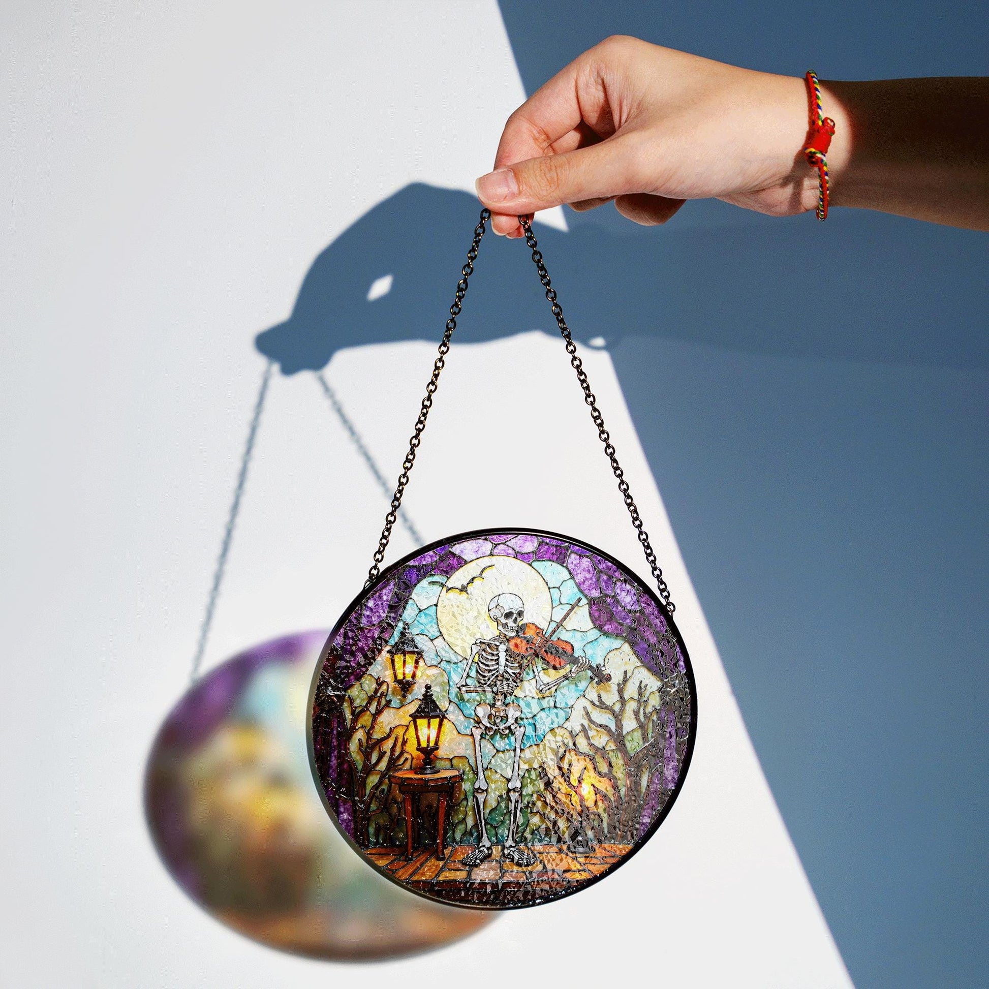 Skeleton Playing Violin Spooky Stained Glass Suncatcher Halloween Gothic Gift