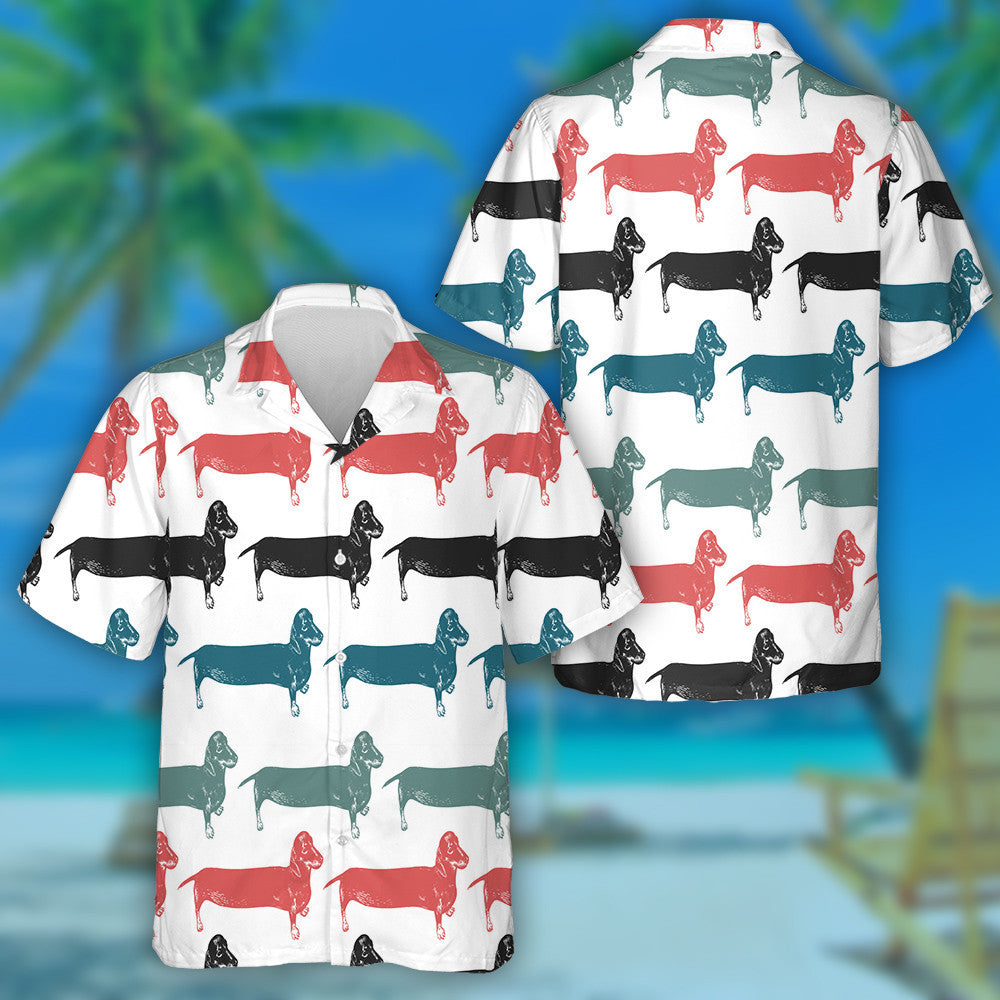 Sceitse Dachshunds Madraí Fada Dubh Dearg Agus Gorm Léine Haváís, Bronntanas Léine Haváís, Bronntanas Nollag