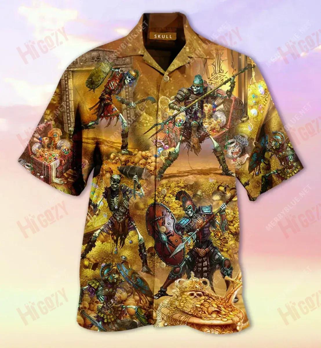 Skull Treasure Gearr Léinte Haváís Laethanta Saoire Muinchille Gearr Léinte Haváís Saincheaptha Léinte haváíais d'Fhir, Bronntanas Léine Haváís, Bronntanas Nollag