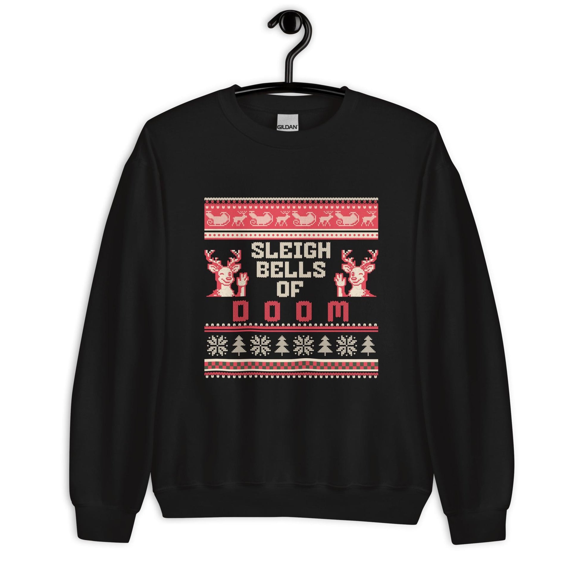 Sleigh Bells of Doom Christmas Jumper | Funny Dark Humour Xmas | Ugly Holiday Knitwear | Alternative Novelty Xmas Gift