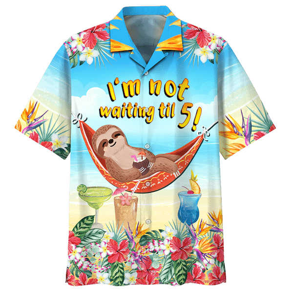 Sloth ina luí ar phatrún hammock Léine haváí, bronntanas Léine haváíais, bronntanas Nollag