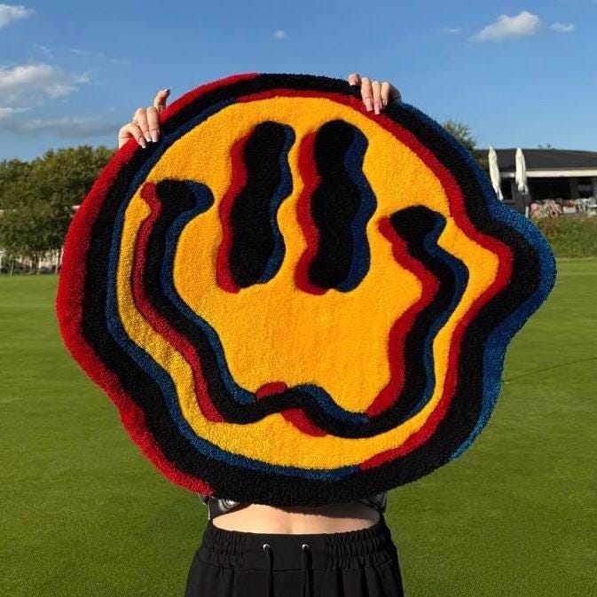 Smiley Face Rug 3D | Tufted Happy Emoji Carpet | Cute Aesthetic Home Decor
