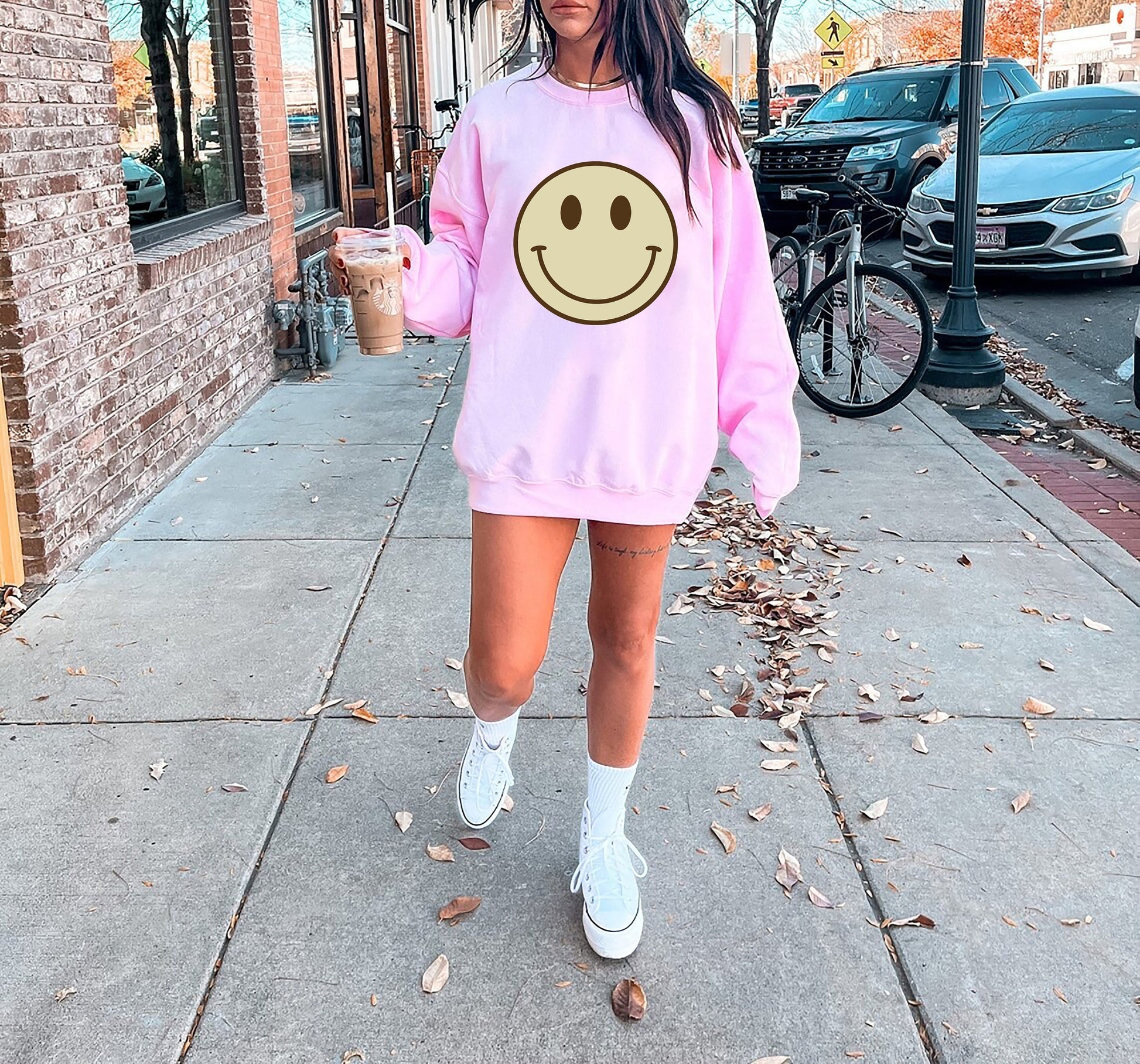 Geansaí Aghaidh Smiley Sweatshirt Preppy Éadaí Preppy Geansaí VSCO Y2K Sweatshirt Lightning Bolt Sweatshirt Smiley , bronntanas trending