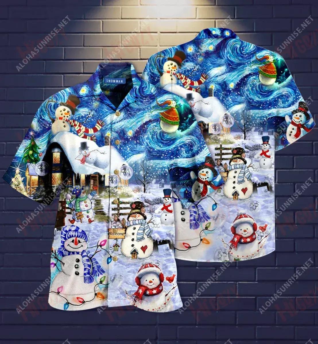 Fear Sneachta san Oíche Nollag Léine Ghearr Muinchille Caitheamh aimsire Léinte Haváís Saincheaptha Léinte Haváís D'Fhir, Bronntanas Léine Haváís, Bronntanas Nollag