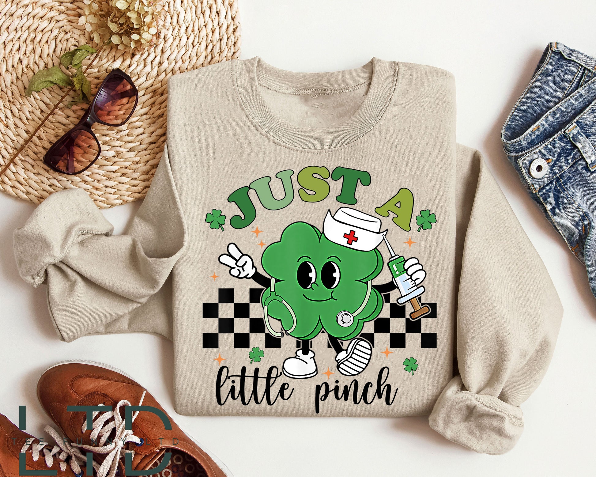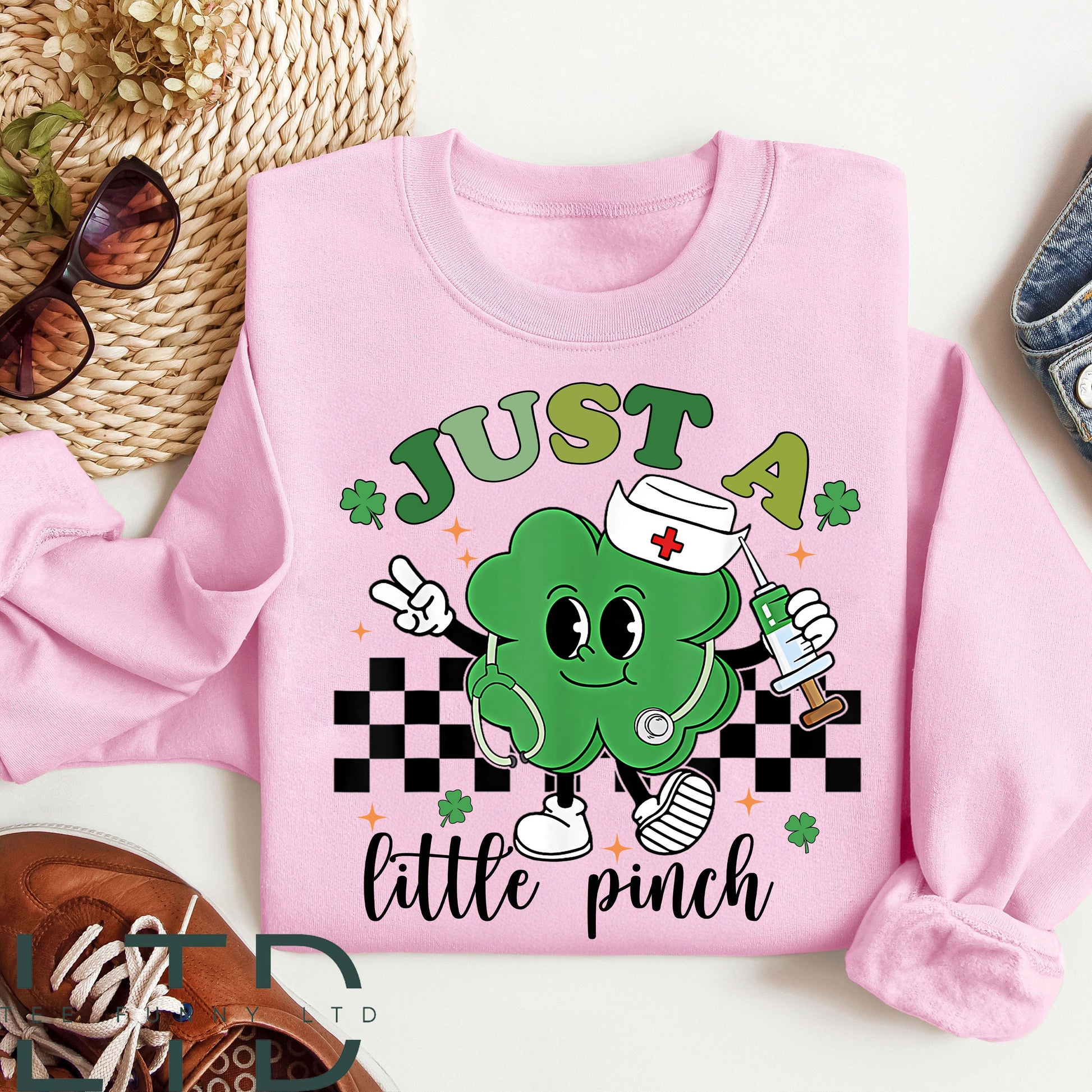 Léinte Altraí Lá Fhéile Pádraig, Léinte Altraí, Banaltra Léinte Phádraig, Pionsa Beag RN Fléibeatóimí L&D, T-Léinte Seamróige do Mhná 1
