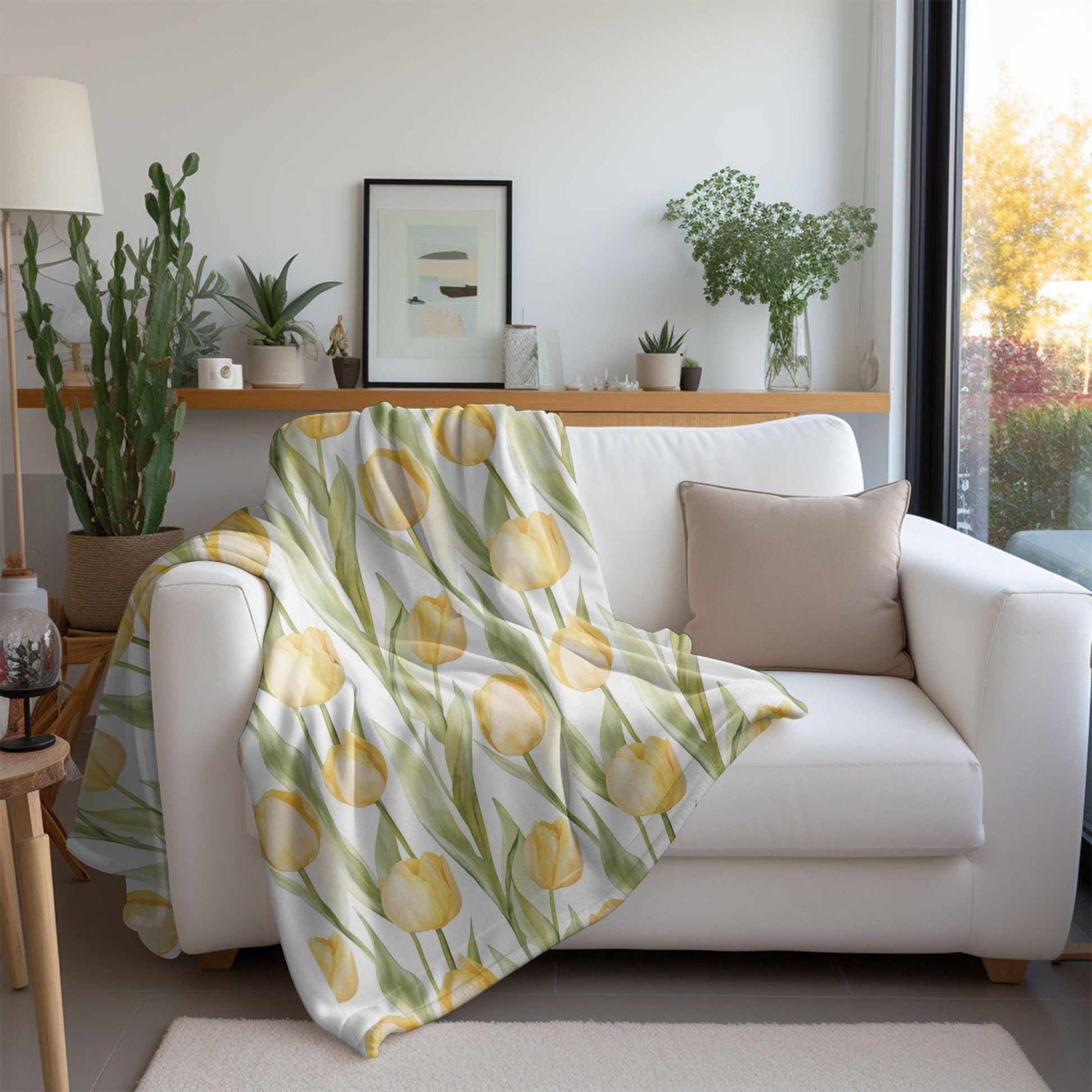 Spring Tulip Blanket Yellow Flowers Fleece Throw Floral Easter Home Decor Botanical Lap Blanket Nursery Decor Nesting Party Baby Shower Gift