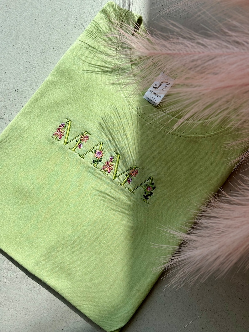 Stijlvol geborduurd moeder-T-shirt: ontwerp met bloemenletters, perfect eerbetoon aan moeders liefde en schoonheid