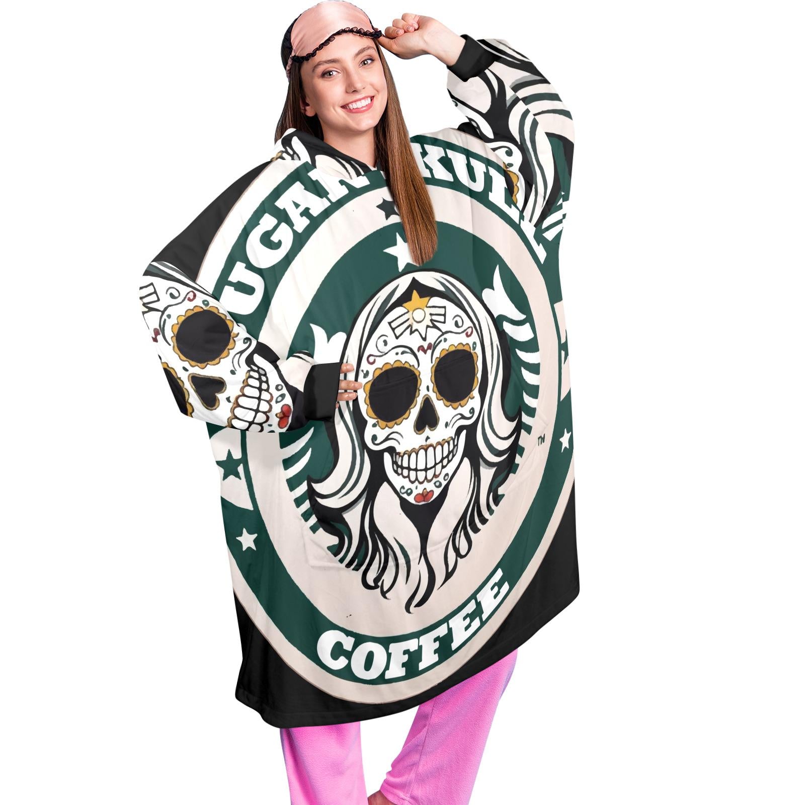 Sugar Skull Coffee Blanket Hoodie Día De Los Muertos Chicano