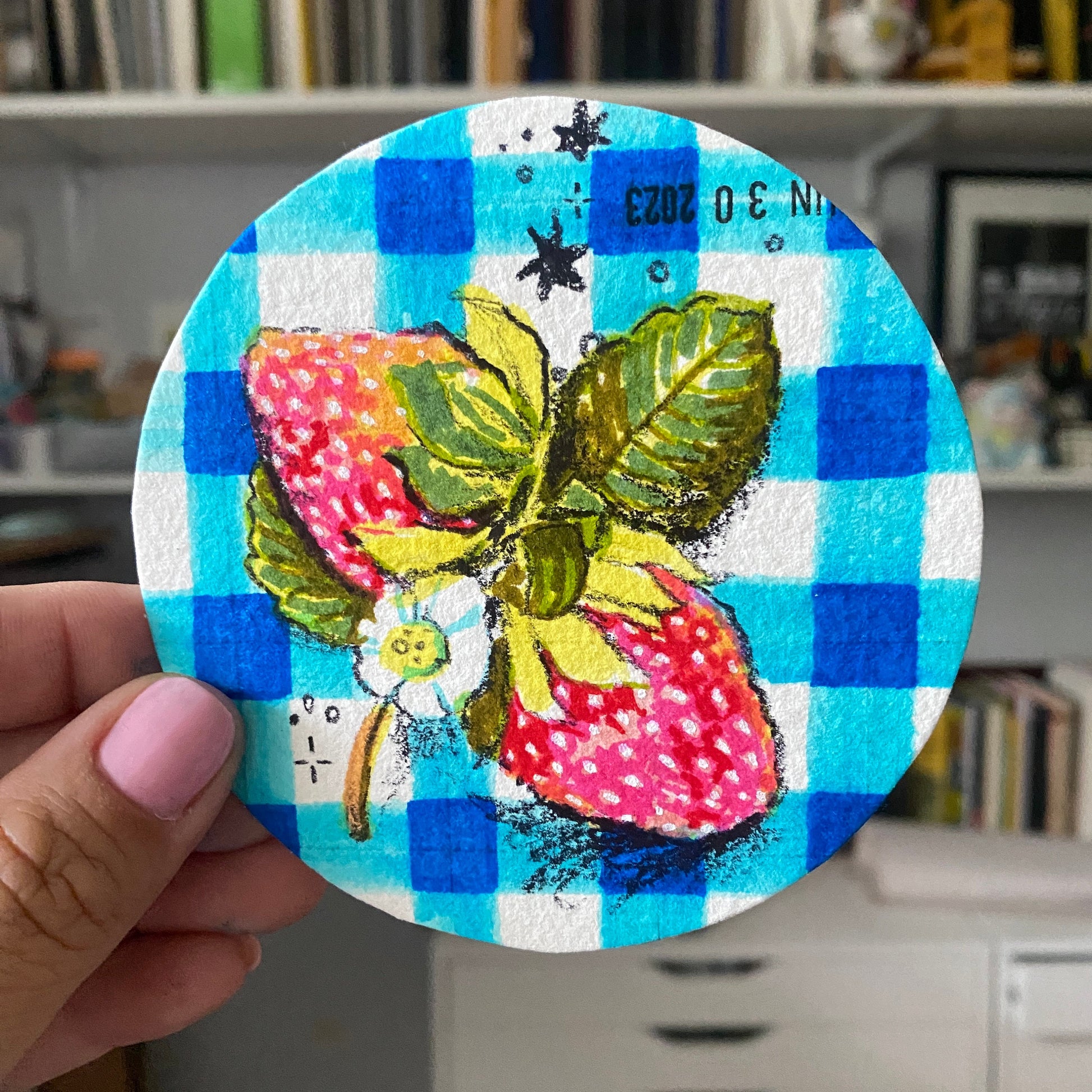 Summer Strawberries Original Mixed Media Drawing | Round Marker Drawing on Paper