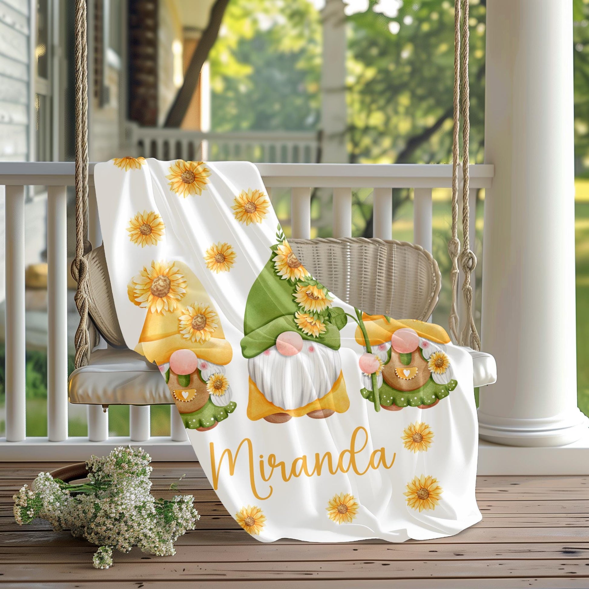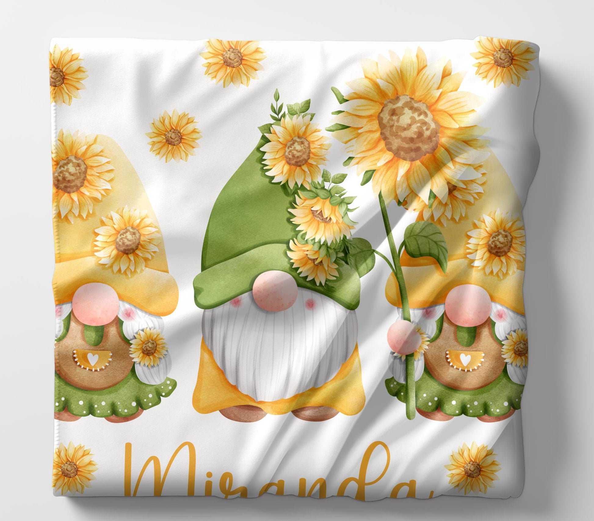Sunflower gnome blanket, cute gnome blanket, cute sunflower gnome blanket, personalized sunflower blanket, personalized gnome blanket
