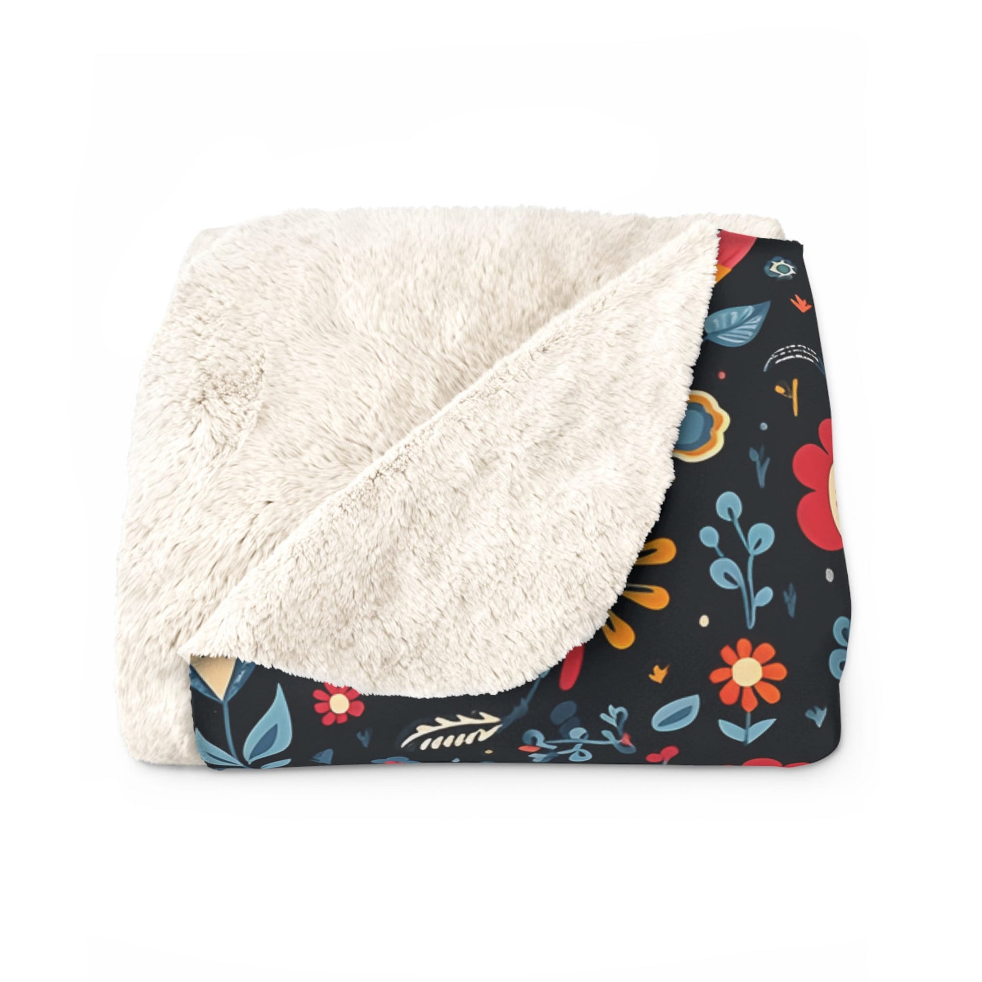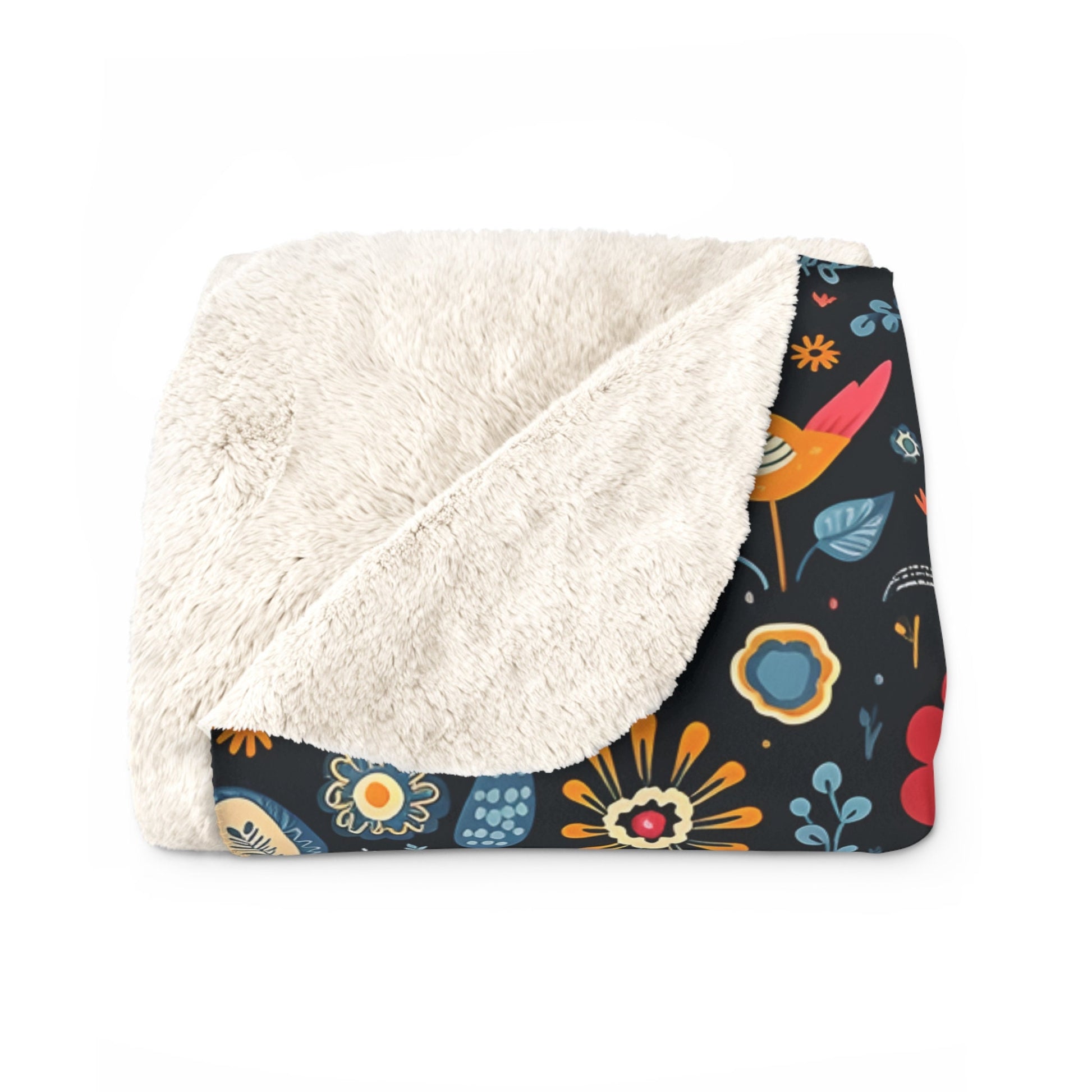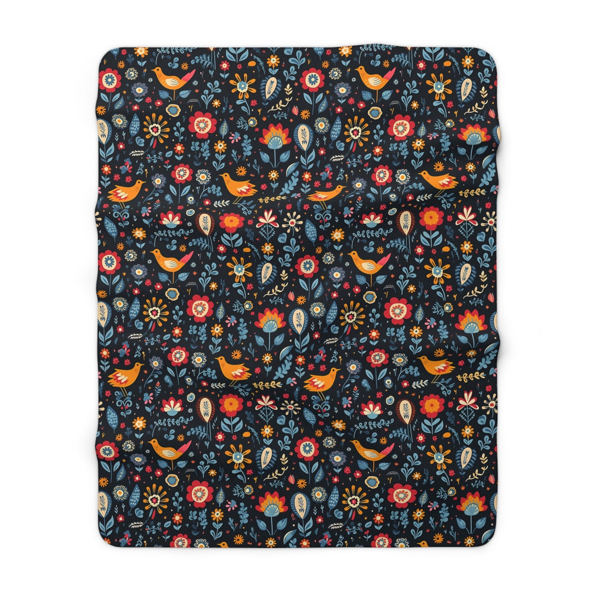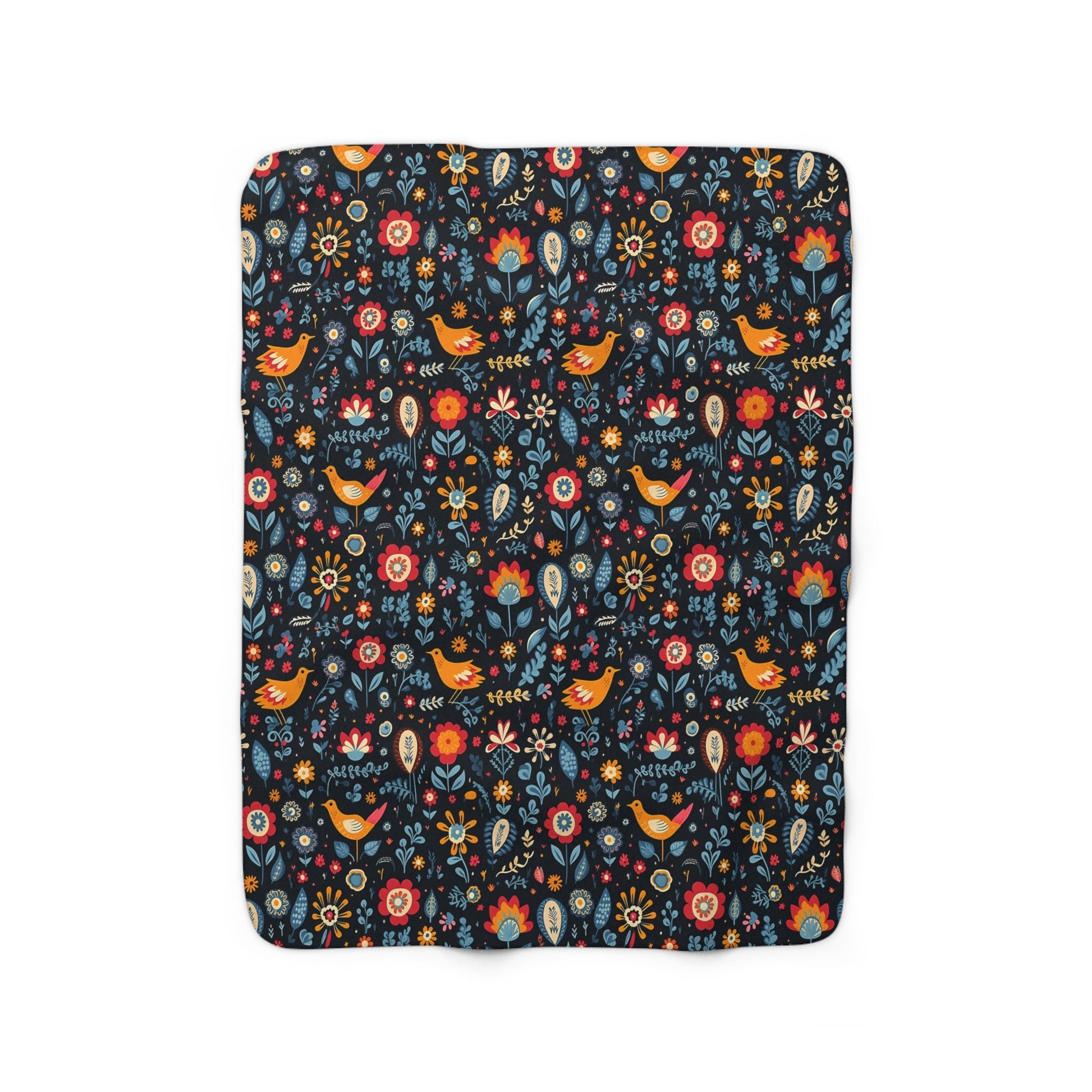 Swedish Folklore Sherpa Fleece Blanket, Scandinavian Bird Images Blanket, Nordic Design Sherpa Blanket, Swedish Forest Images Blanket