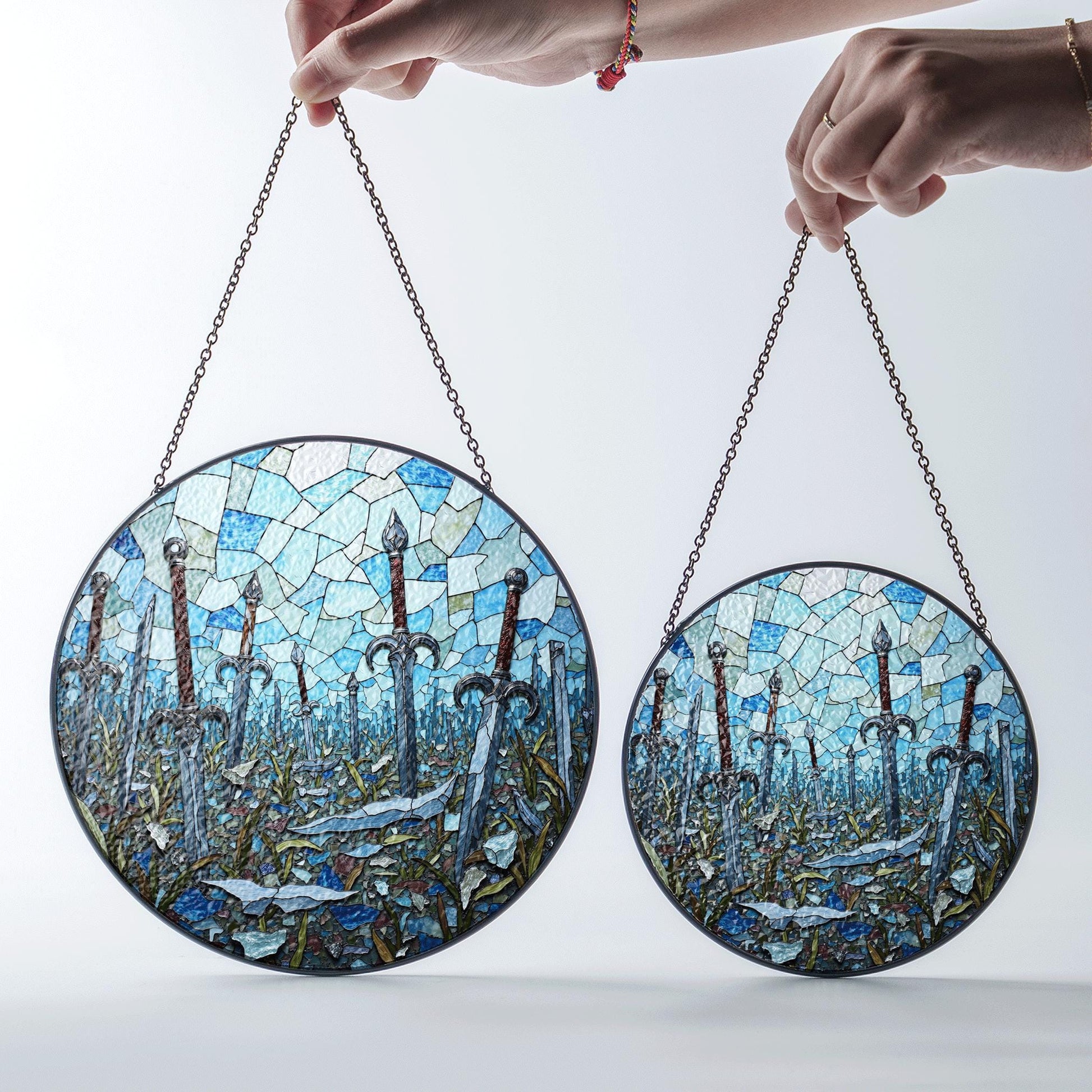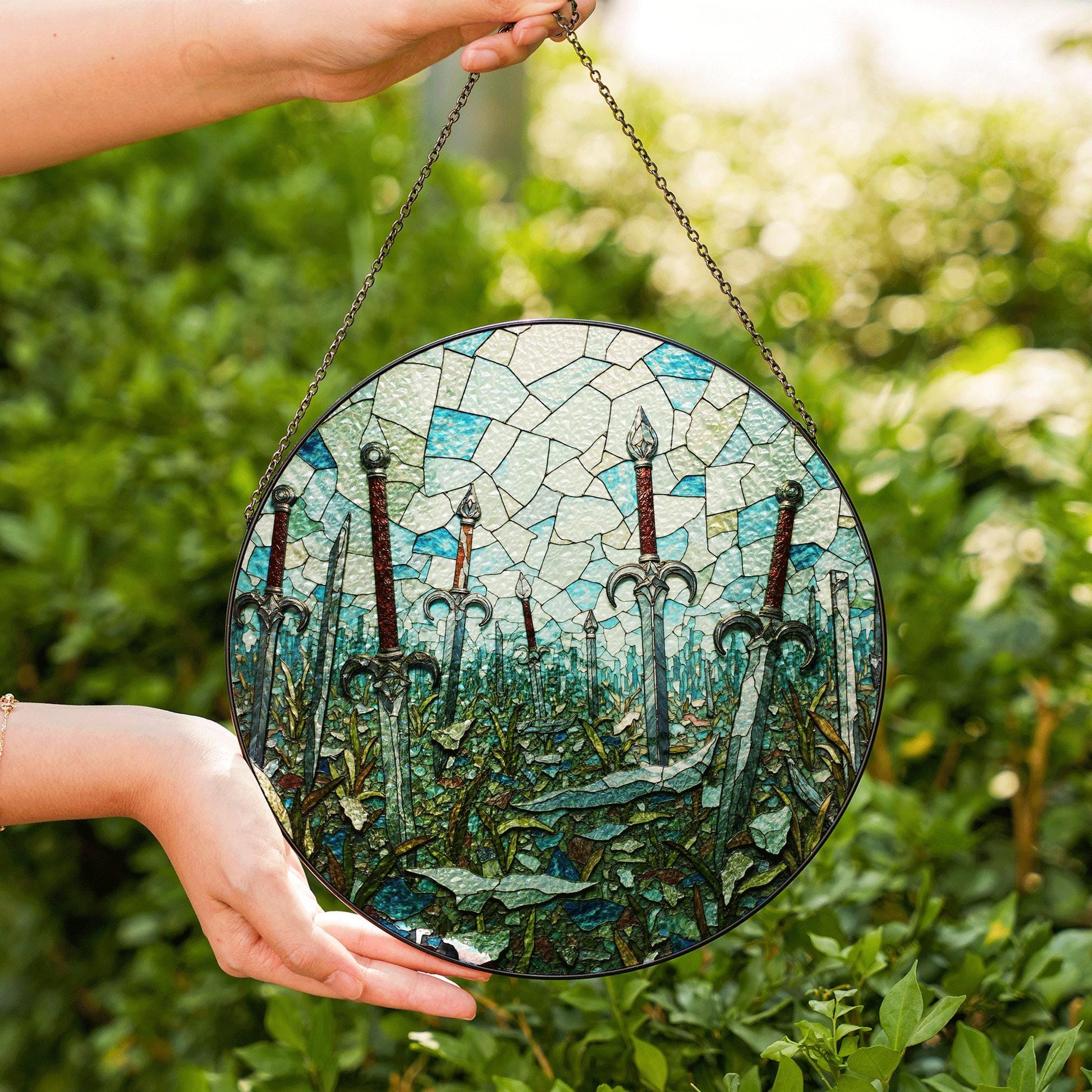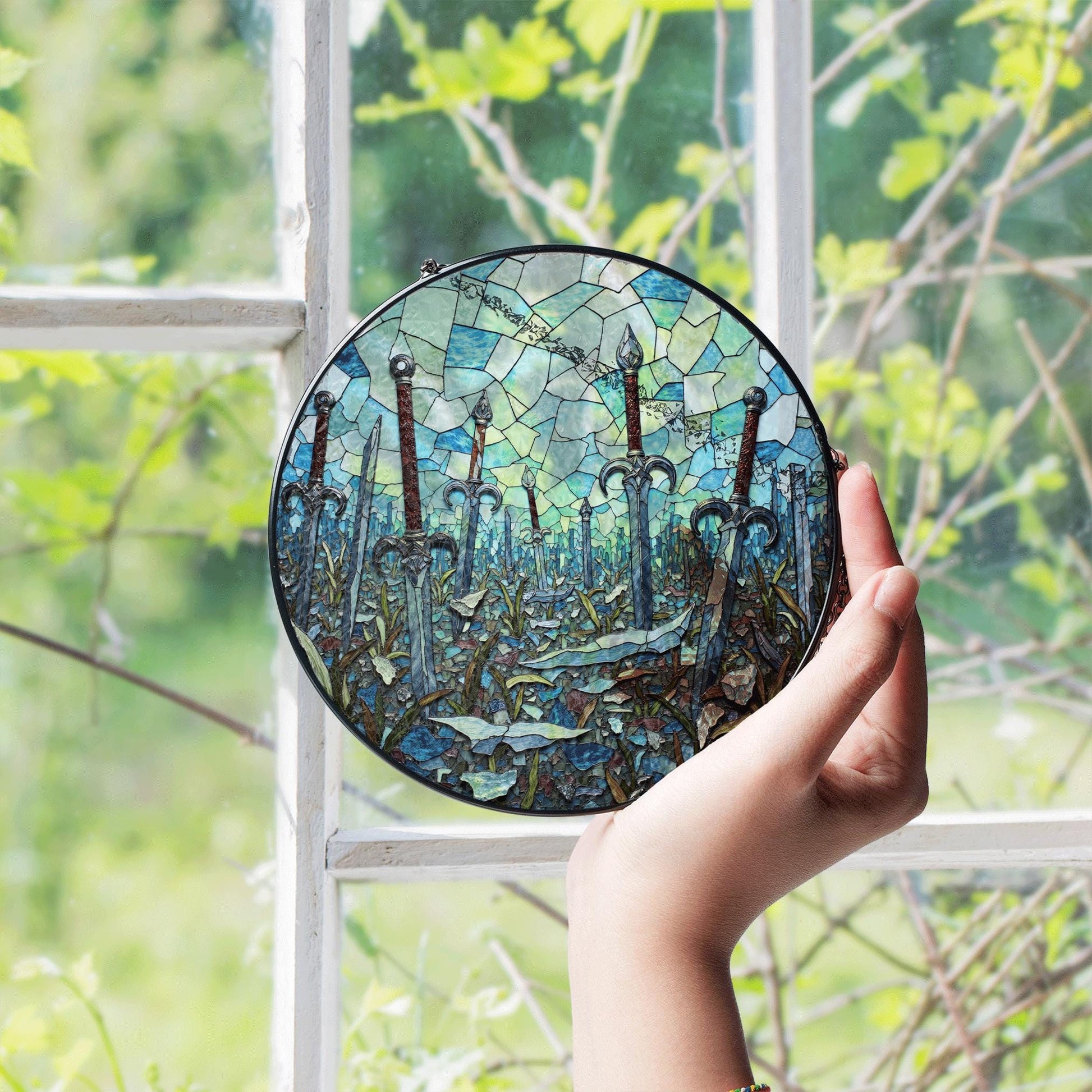 Sword field stained glass fantasy suncatcher mystical decor gift for him birthday Halloween gift