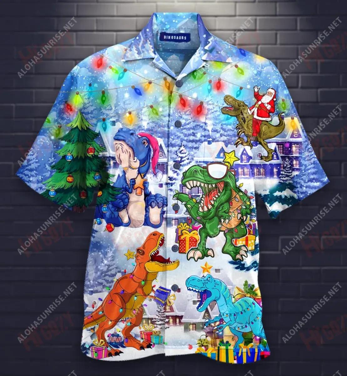 Léinte Gearr Muinchille Nollag T-Rex Laethanta Saoire Léinte T Haváíacha Léinte Haváíais Oirbheartaíochta d'Fhir, Bronntanas Léine Haváíais, Bronntanas Nollag