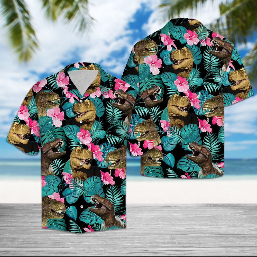 T-rex Sa Jungle Le Hibiscus Pink Dear Léine Haváís, Bronntanas Léine Haváís, Bronntanas Nollag
