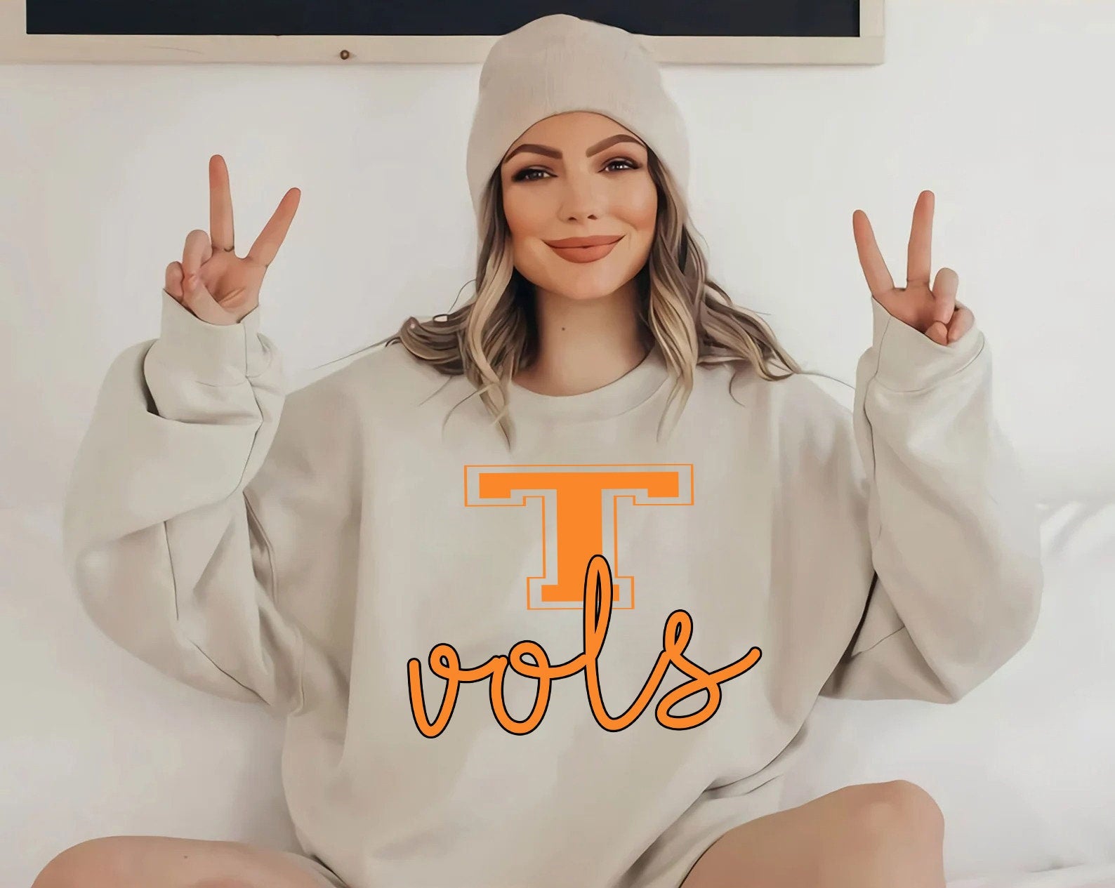 Geansaí Crewneck Checkered Tennessee, Léine Spóirt TN, T-léine, Cló Scáthán, Léine Retro, Fan Tennessee, Léine Crewneck