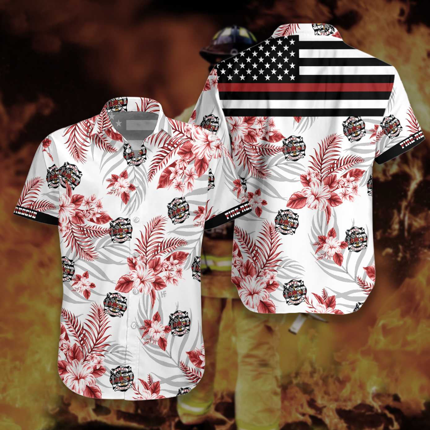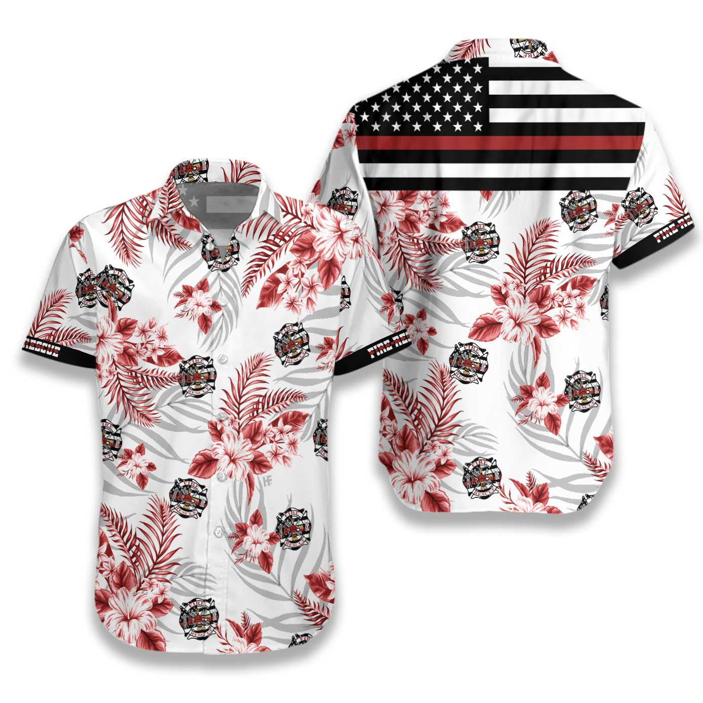 Bratach na Líne Deirge Comhraiceoir Dóiteáin Téama Bródúil Dearadh Léine Haváís, Bronntanas Léine Haváíais, Bronntanas Nollag