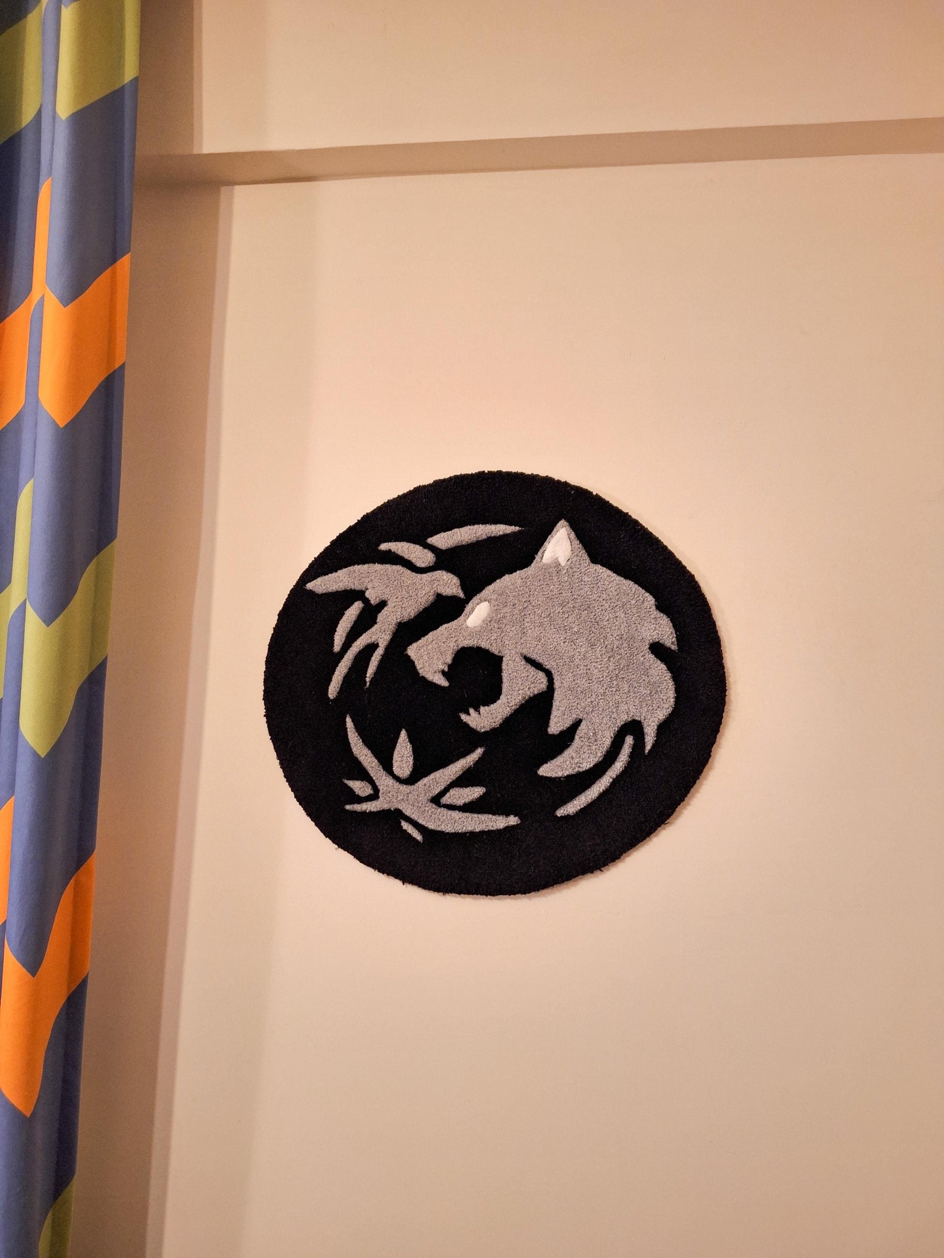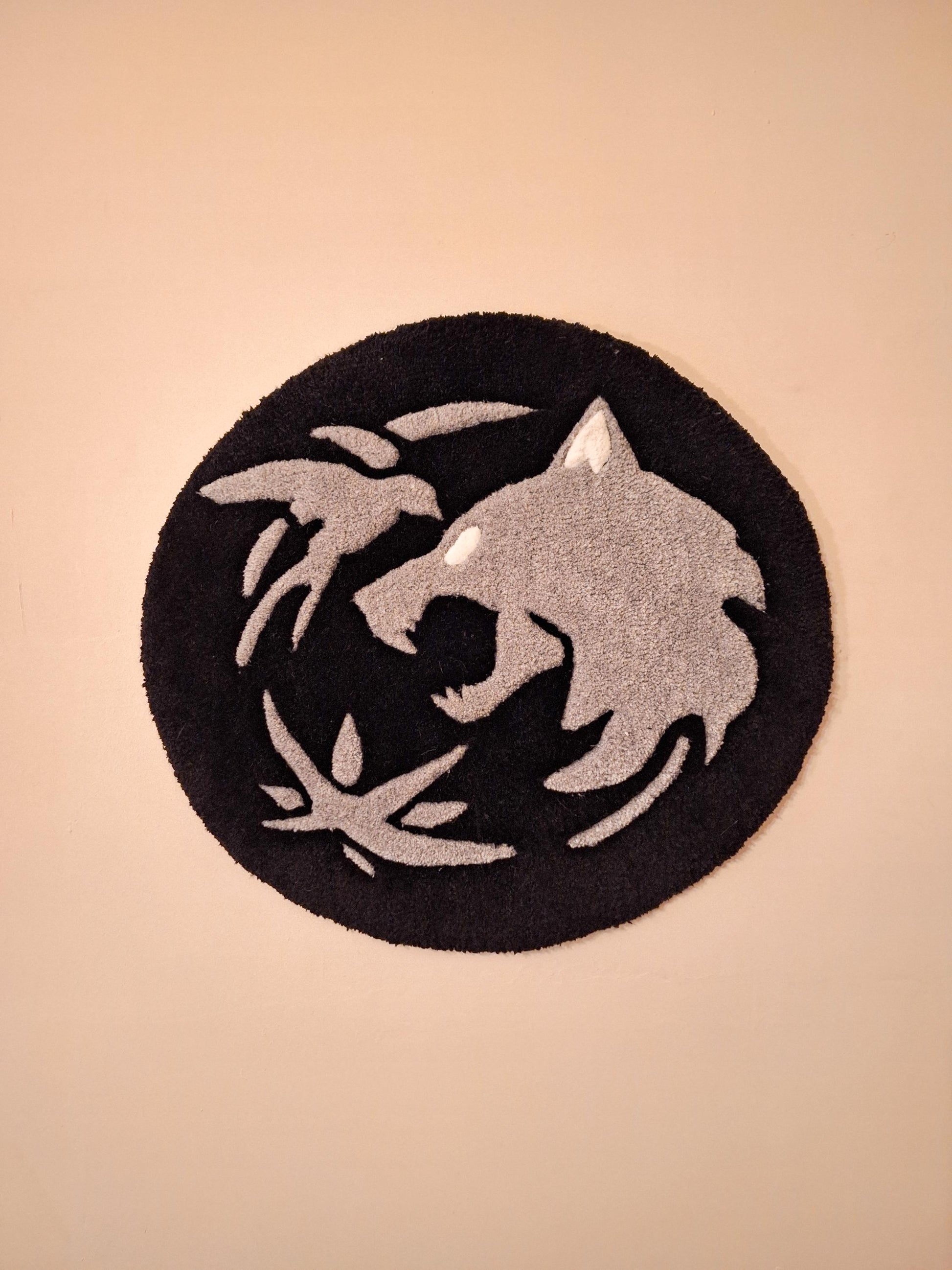 The Witcher Wolf Medallion Rug: Handmade Tufted Gaming Decor