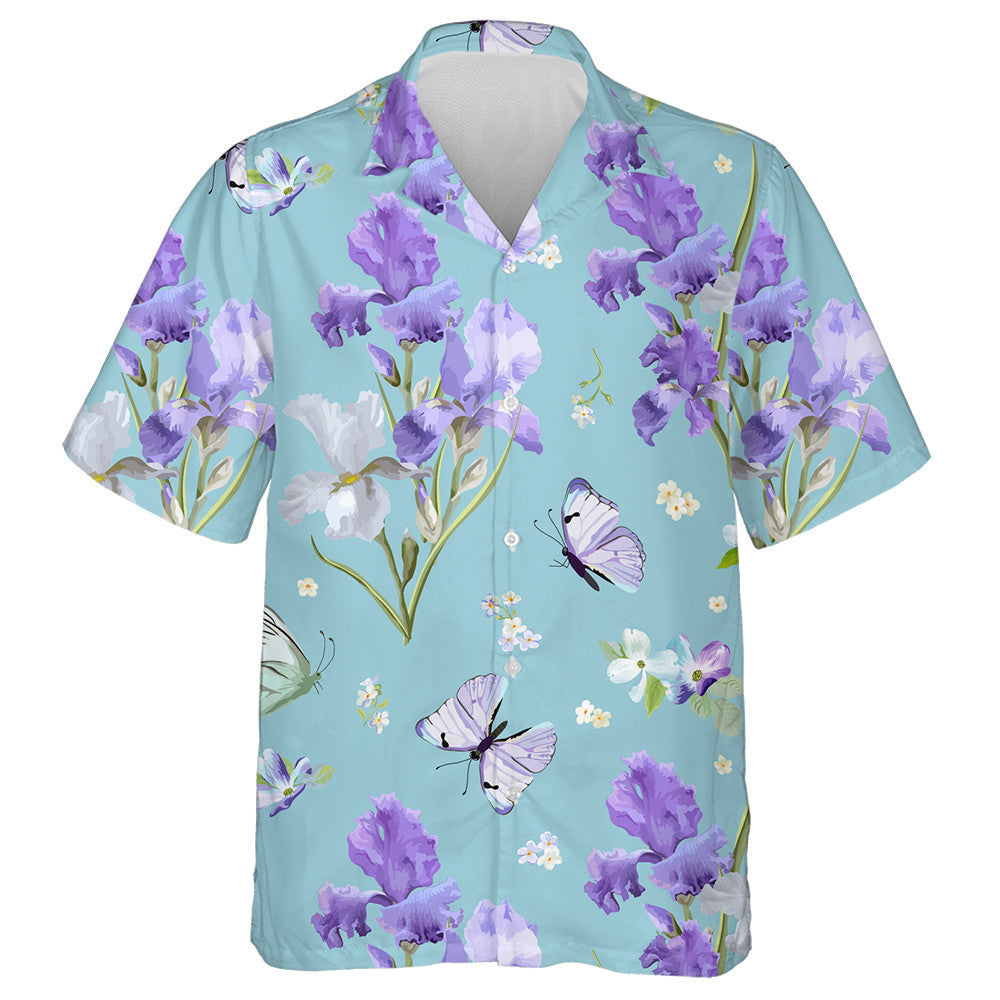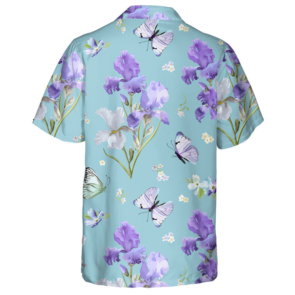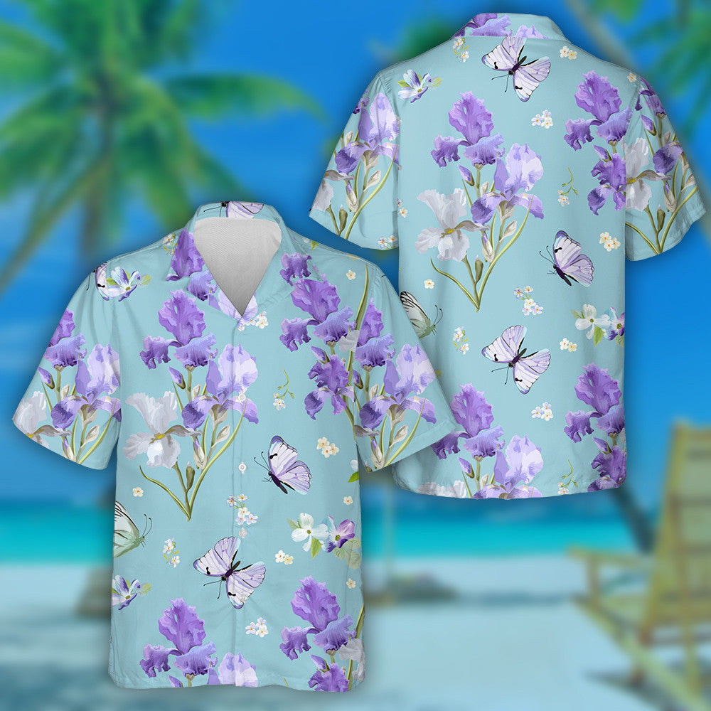 Téama Bláthanna Iris Bhláth Corcra Agus Féileacáin Eitilte Léine Haváí, Bronntanas Léine Haváís, Bronntanas Nollag