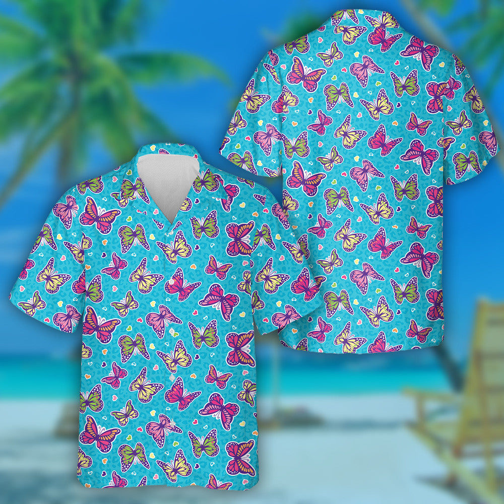Téama Croí Beag Agus Féileacán ar Léine Haváís Gorm Liopard, Bronntanas Léine Haváíais, Bronntanas Nollag