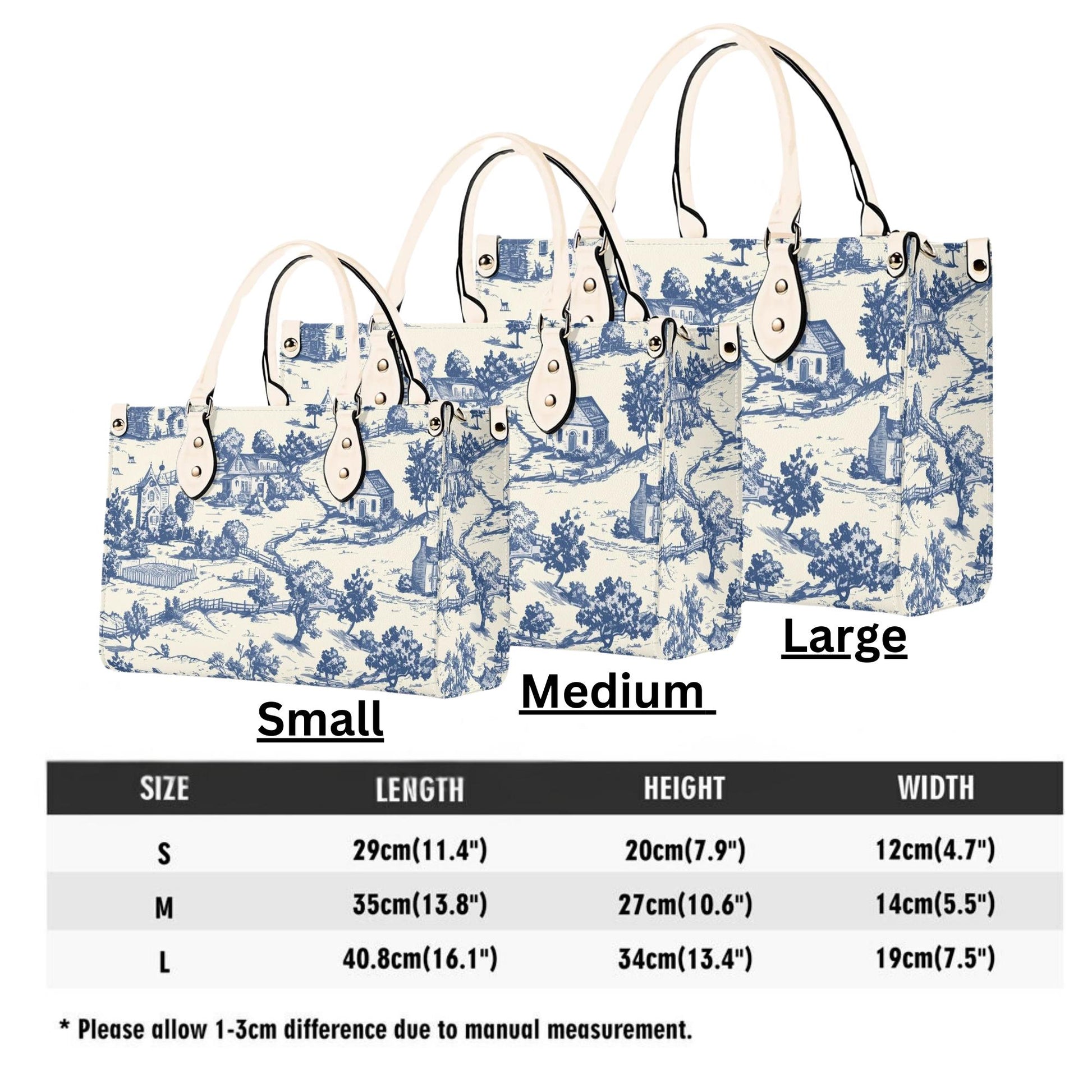 Toile-de-jouy Vintage-Inspired Handbag. Square Tote Bag, Waterproof PU Leather Tote, Top Handle Vegan Leather, Crossbody, Shoulder bag,