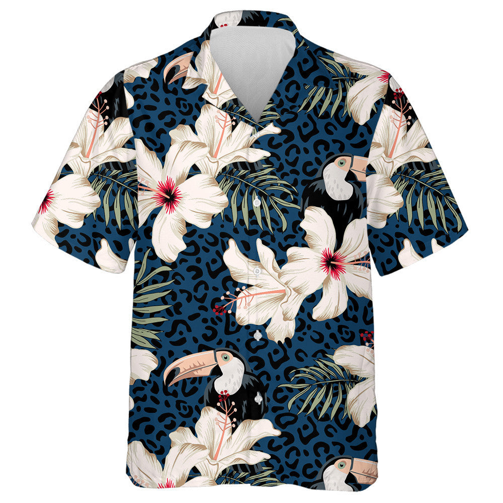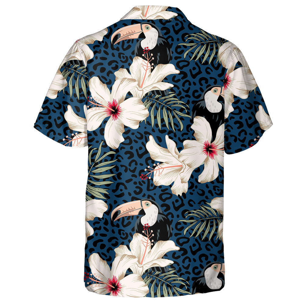 Toucans Bláthanna Hibiscus Agus Duilleoga Palm Ar Chraiceann Liopard Léine Haváís, Bronntanas Léine Haváís, Bronntanas Nollag