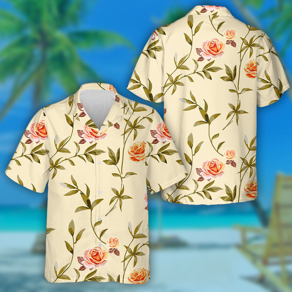 Cúlra Bláthanna Trendy Le Bláthanna Rósanna Oráiste Buí Léine Haváís, Bronntanas Léine Haváís, Bronntanas Nollag