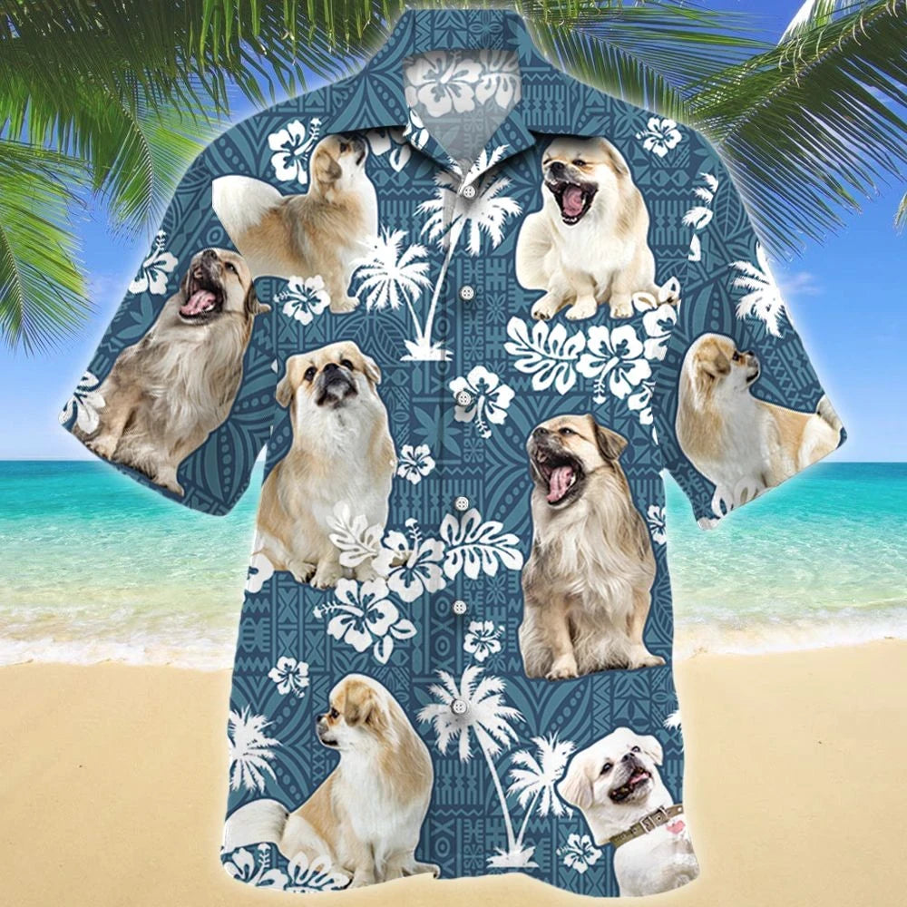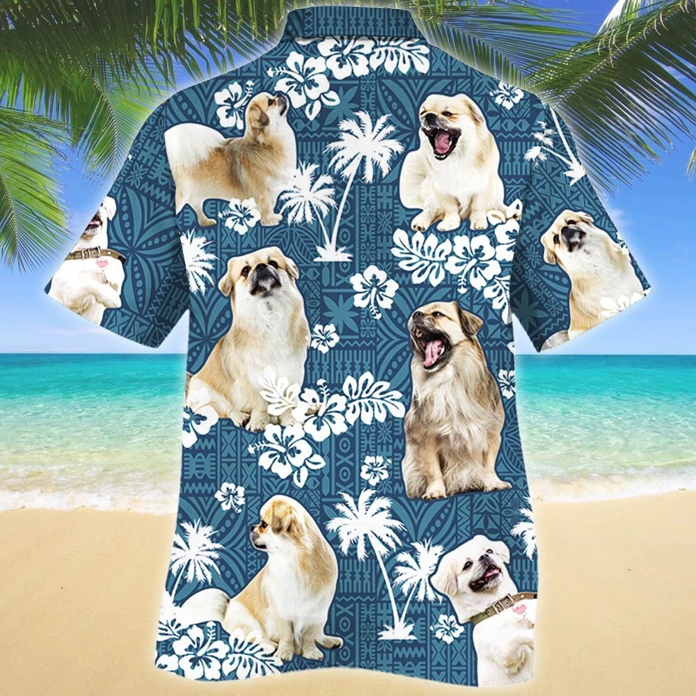 Dearadh Trópaiceach Madra Spaniel Tibéidis Patrún treibhe Gorm Léine Haváís, Bronntanas Léine Haváís, Bronntanas Nollag