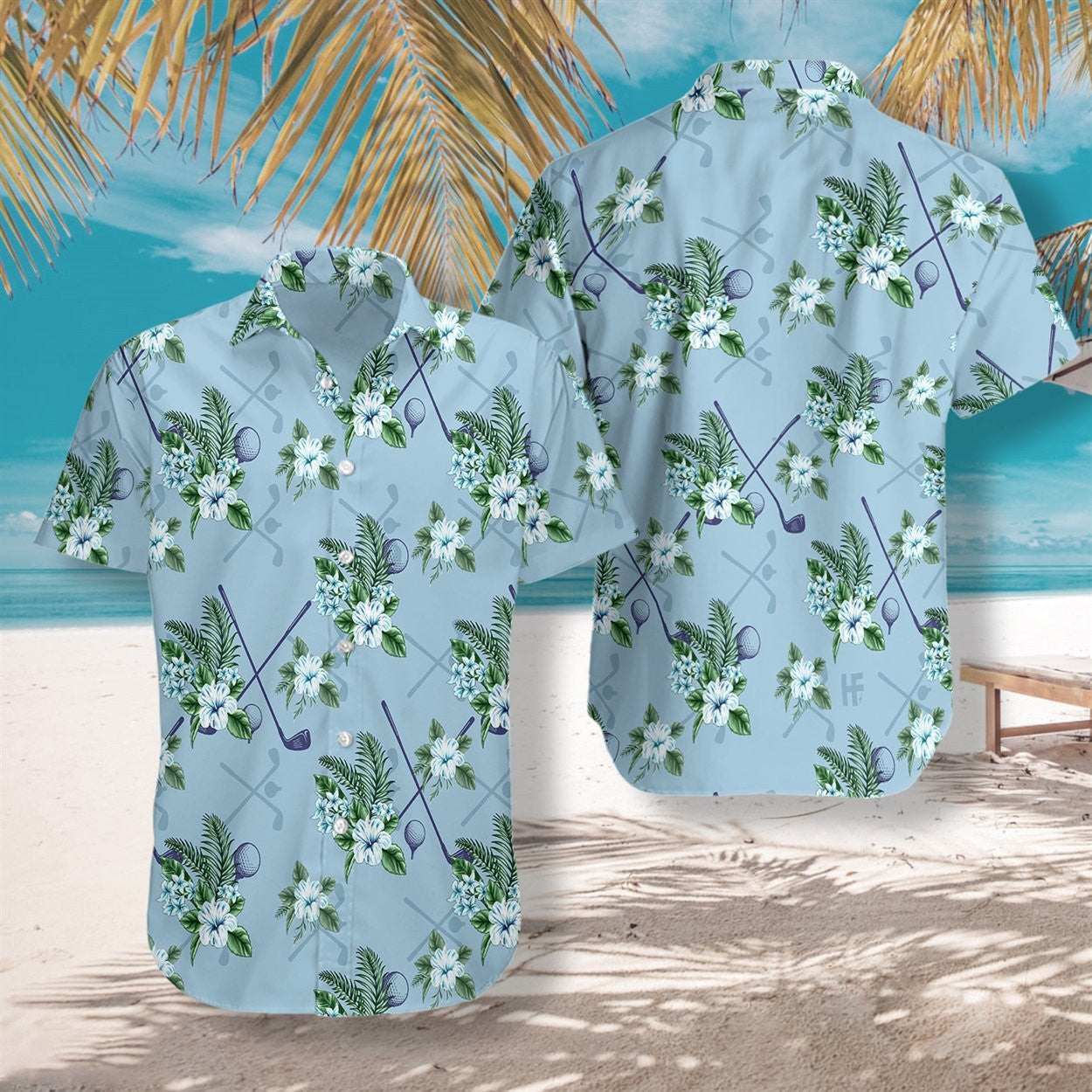 Gailf Trópaiceach 5 Ar Chúlra Gorm Dearadh Léine Haváís, Bronntanas Léine Haváíais, Bronntanas Nollag