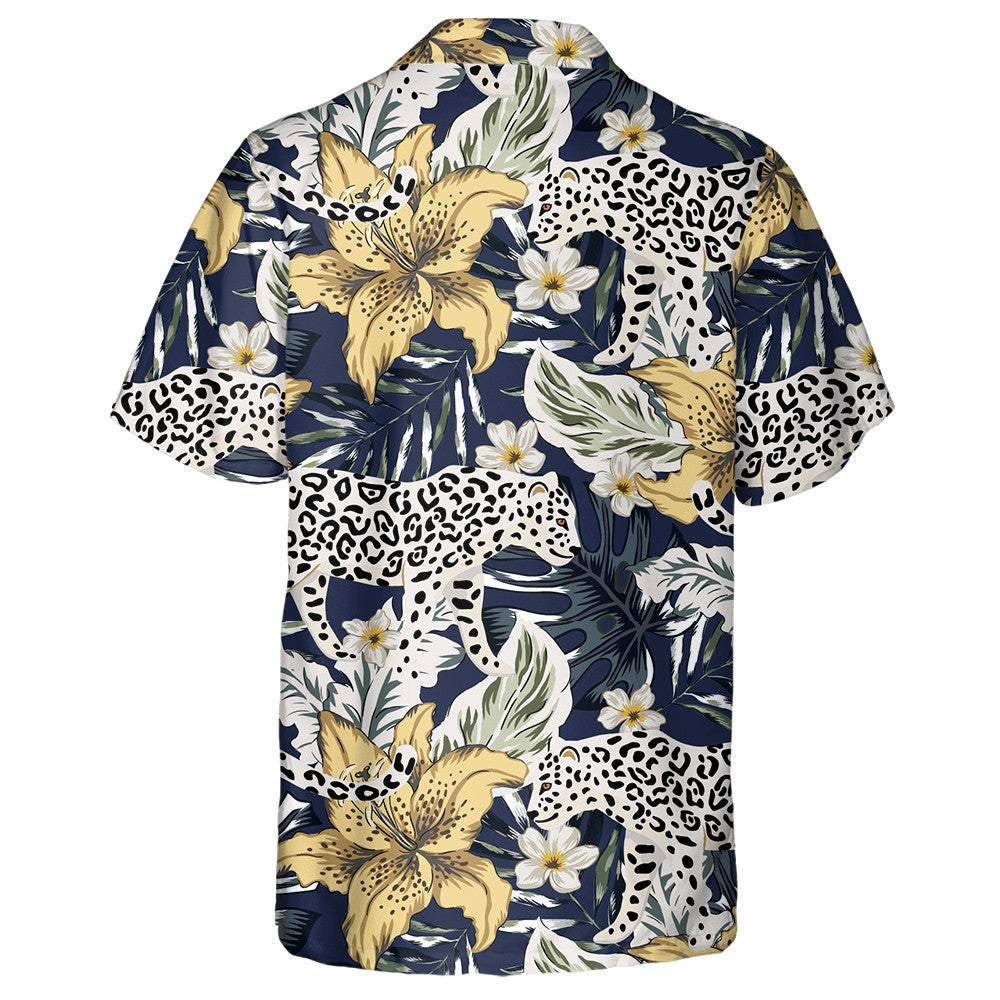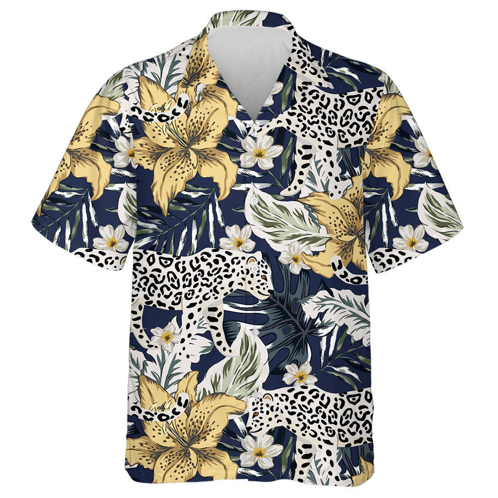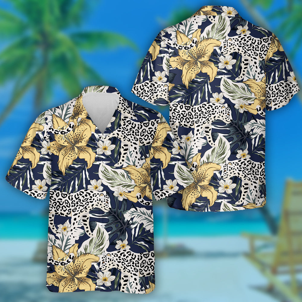 Bláthanna Lily Ainmhithe Liopard Teochriosach Agus Duilleoga Pailme Léine Haváís, Bronntanas Léine Haváís, Bronntanas Nollag