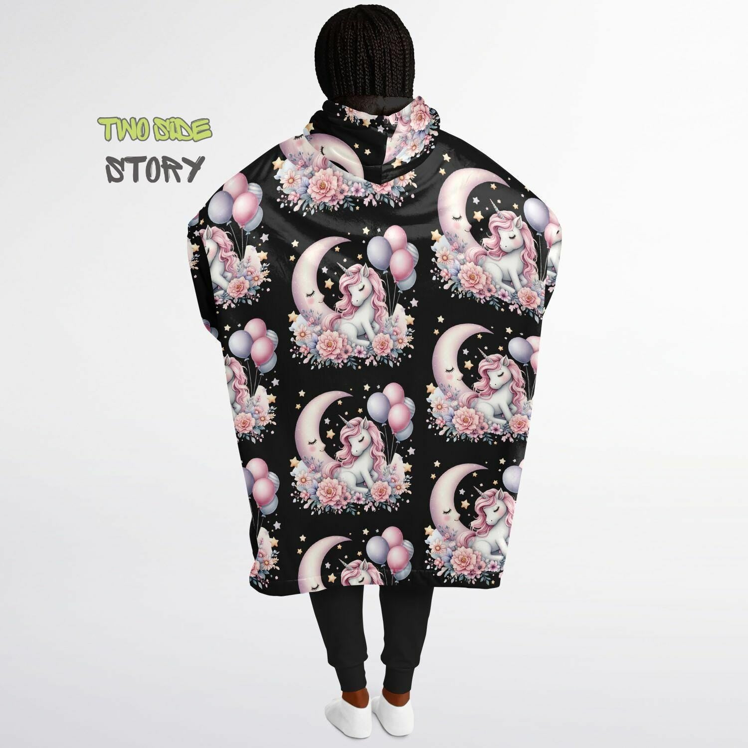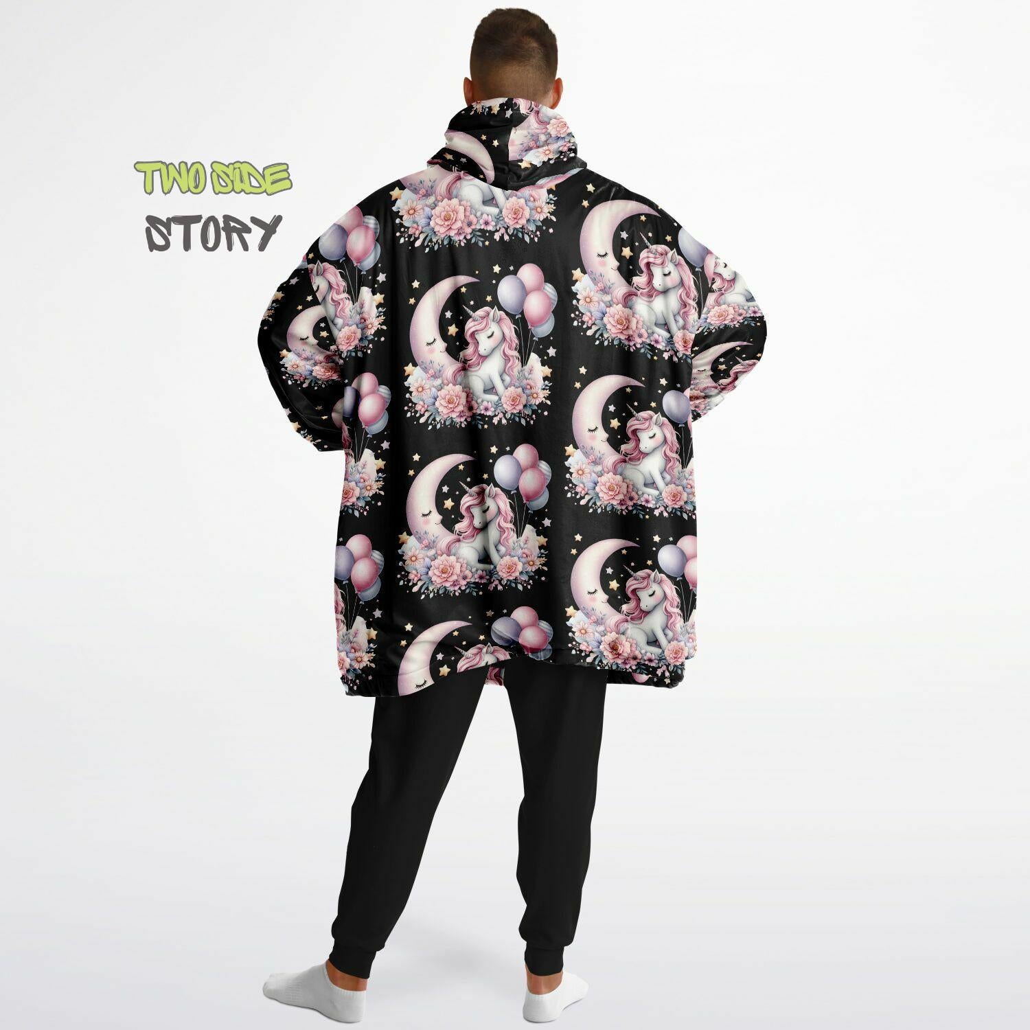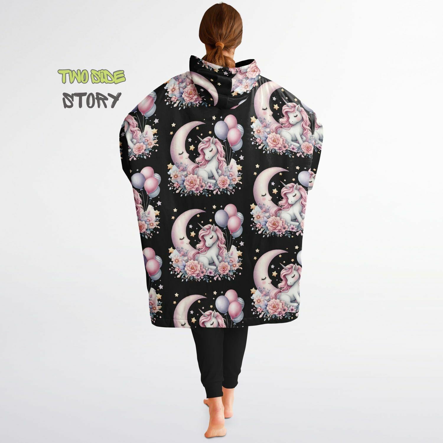 Unisex Cute Kawaii Unicorn Print Snug Hoodie,Printed Hooded Blanket with Sleeves, Lounge Wear, Novelty Gifts, Birthday Gift ,Christmas Gifts