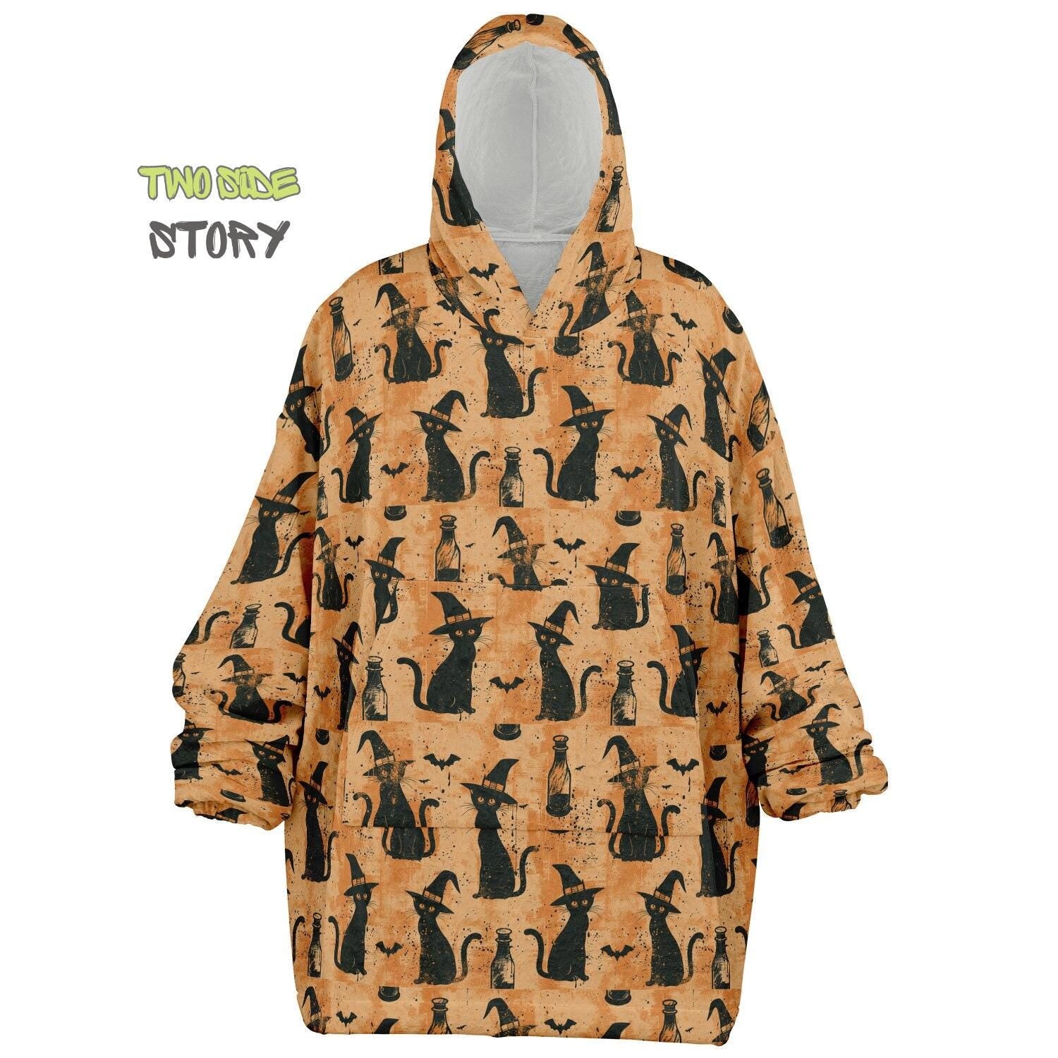 Unisex Halloween Which Cat Print Snug Hoodie,Printed Hooded Blanket,Blanket Sleeves,Lounge Wear,Unique,Novelty Gifts,Birthday Christmas Gift