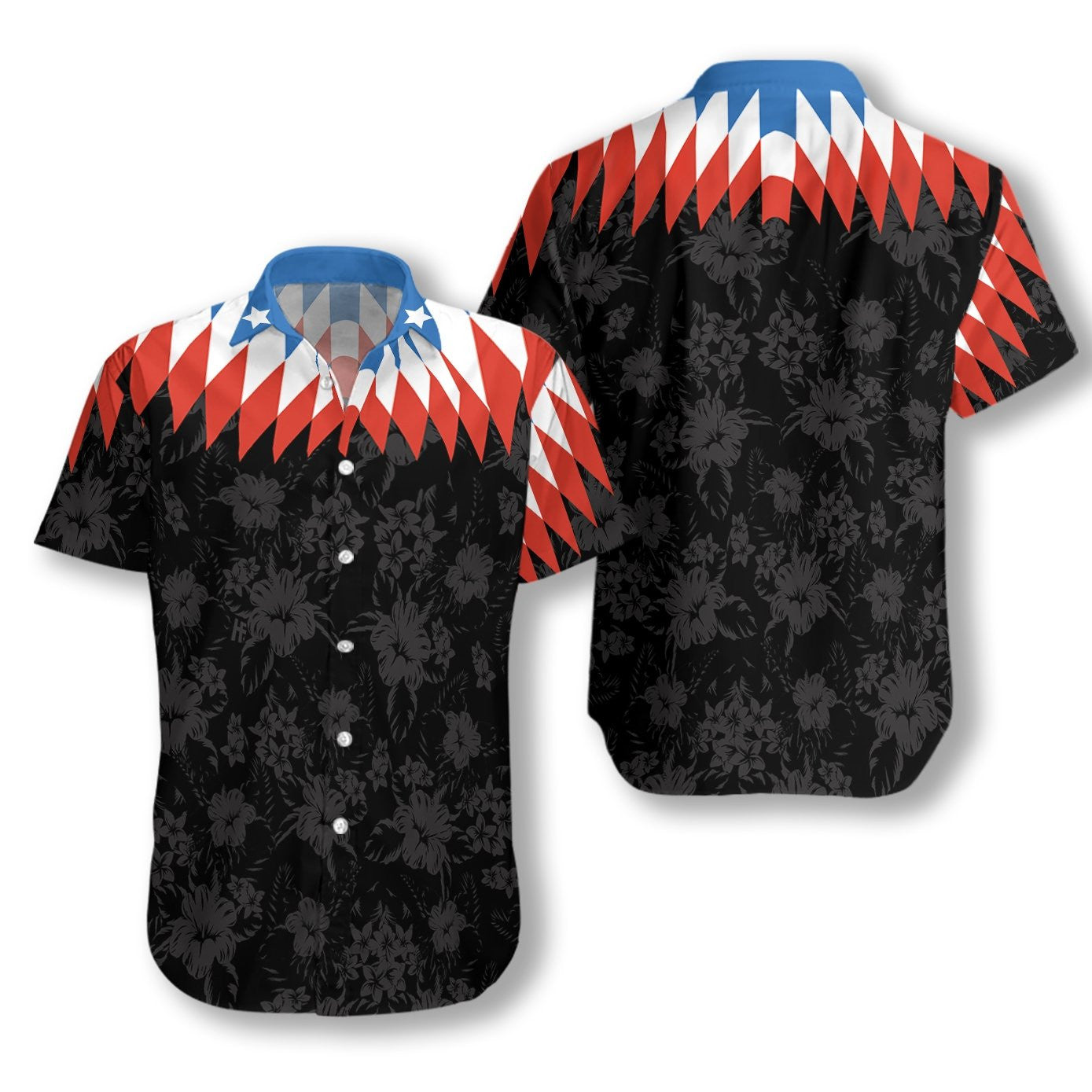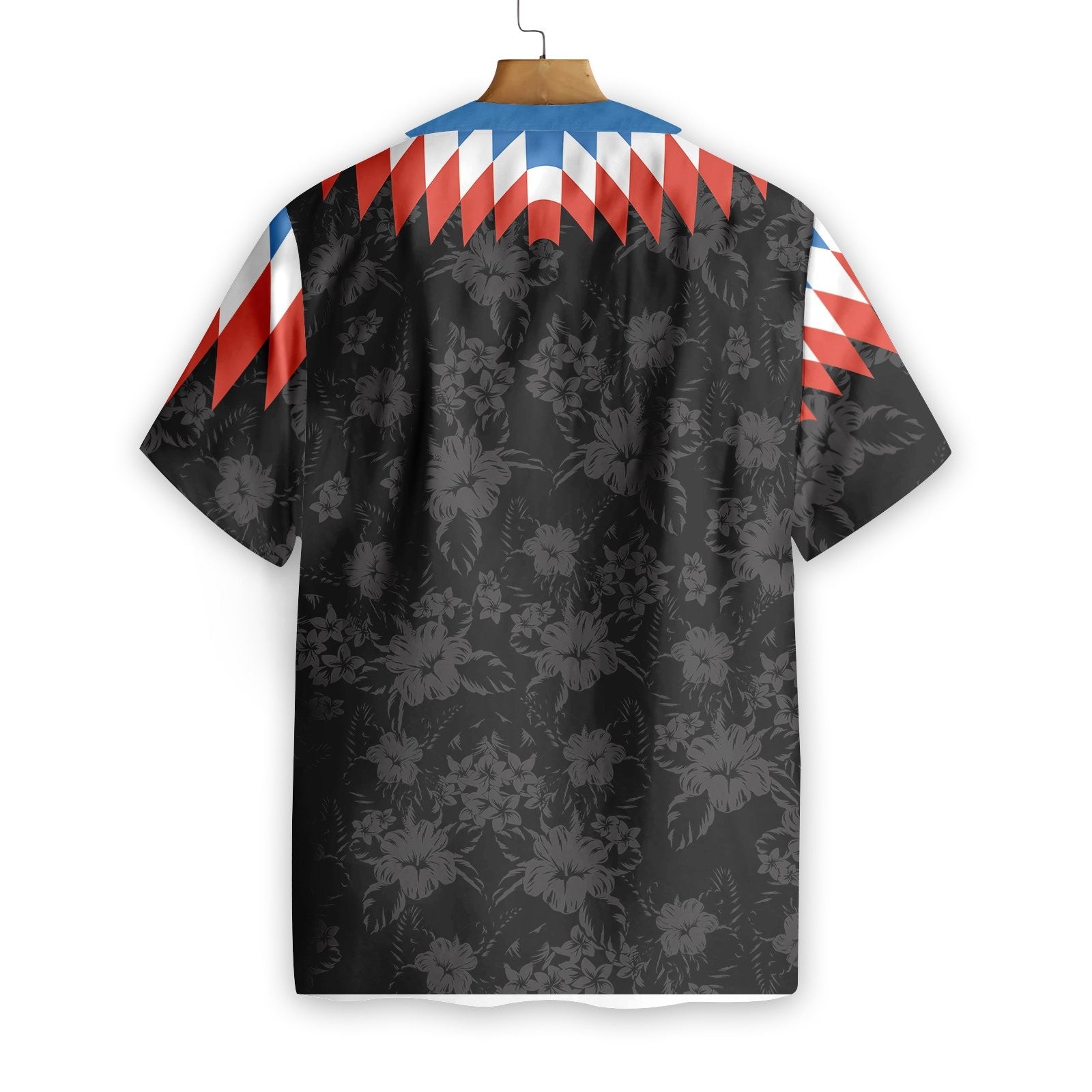 Bláthanna SAM Vintage Dearg Agus Gorm Dearadh Geoiméadrach Léine Haváís, Bronntanas Léine Haváís, Bronntanas Nollag