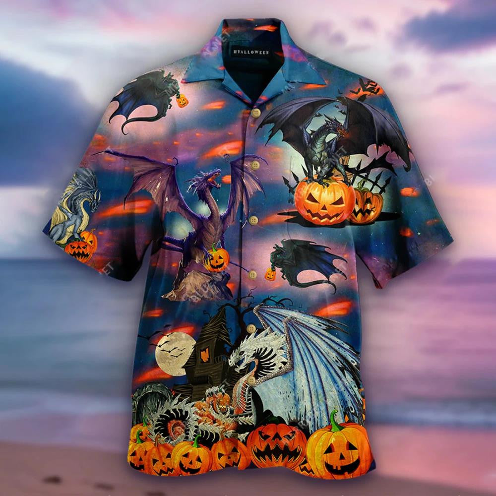 Radharc Oíche Shamhna Dragon Lochlannach Le Léine Haváis Pumpkin, Bronntanas Léine Haváíais, Bronntanas Nollag