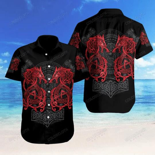 Lochlannach Fenrir Red Tattoo Lochlannach Léine Haváíais Cúpla Dragon, Bronntanas Léine Haváís, Bronntanas Nollag