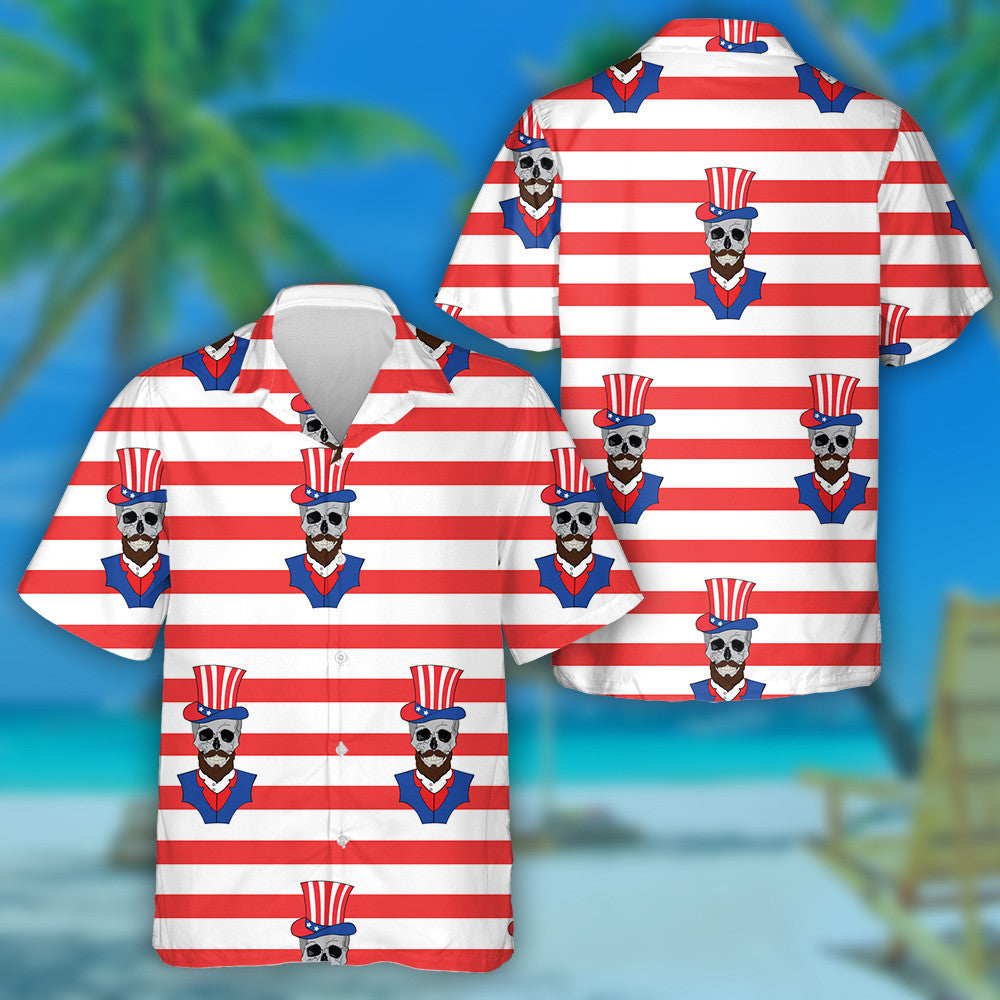 Skulls Oíche Shamhna Lochlannach Le Féasóg I Léine Haváí Meiriceánach Hat, Bronntanas Léine Haváís, Bronntanas Nollag