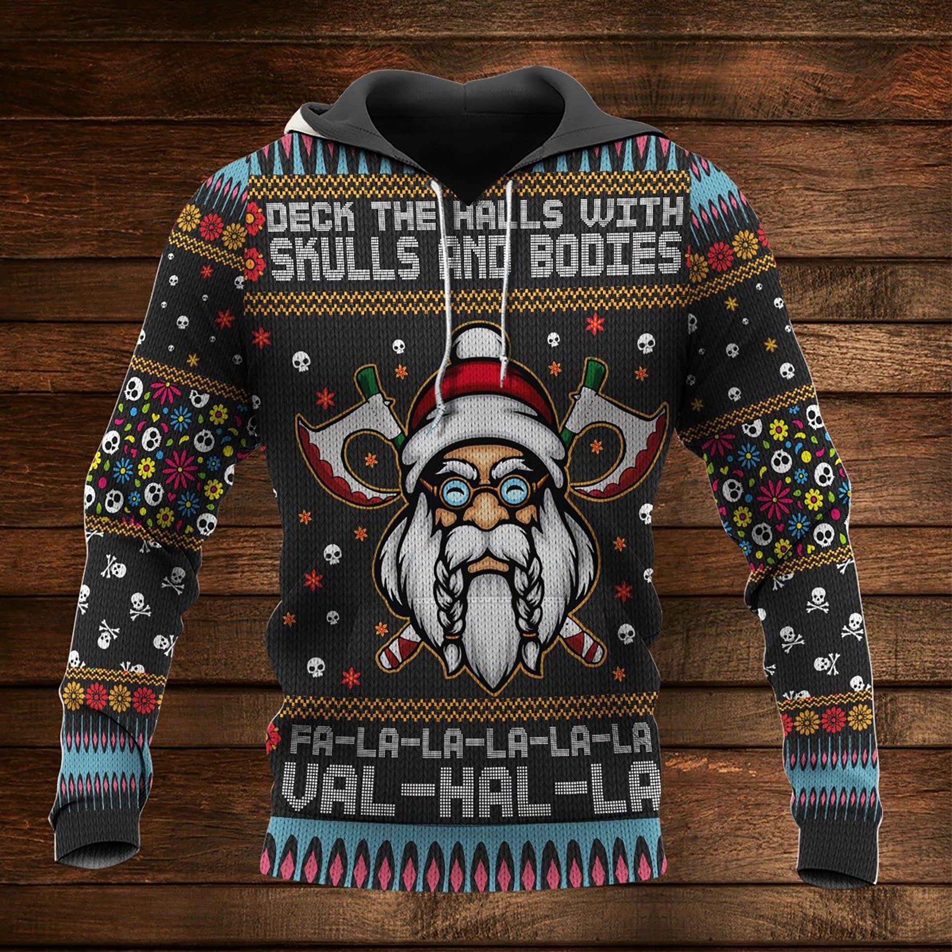 Nollaig Shona na Lochlannach Valhalla Hoodie 3D, Geansaí Gránna Nollag, Bronntanas Nollag, Bronntanas Nollag 2024
