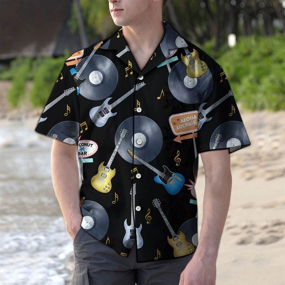 Stíl Vinyl Vinyl Rock And Roll Cúlra Dubh Léine Haváís, Bronntanas Léine haváíais, Bronntanas Nollag