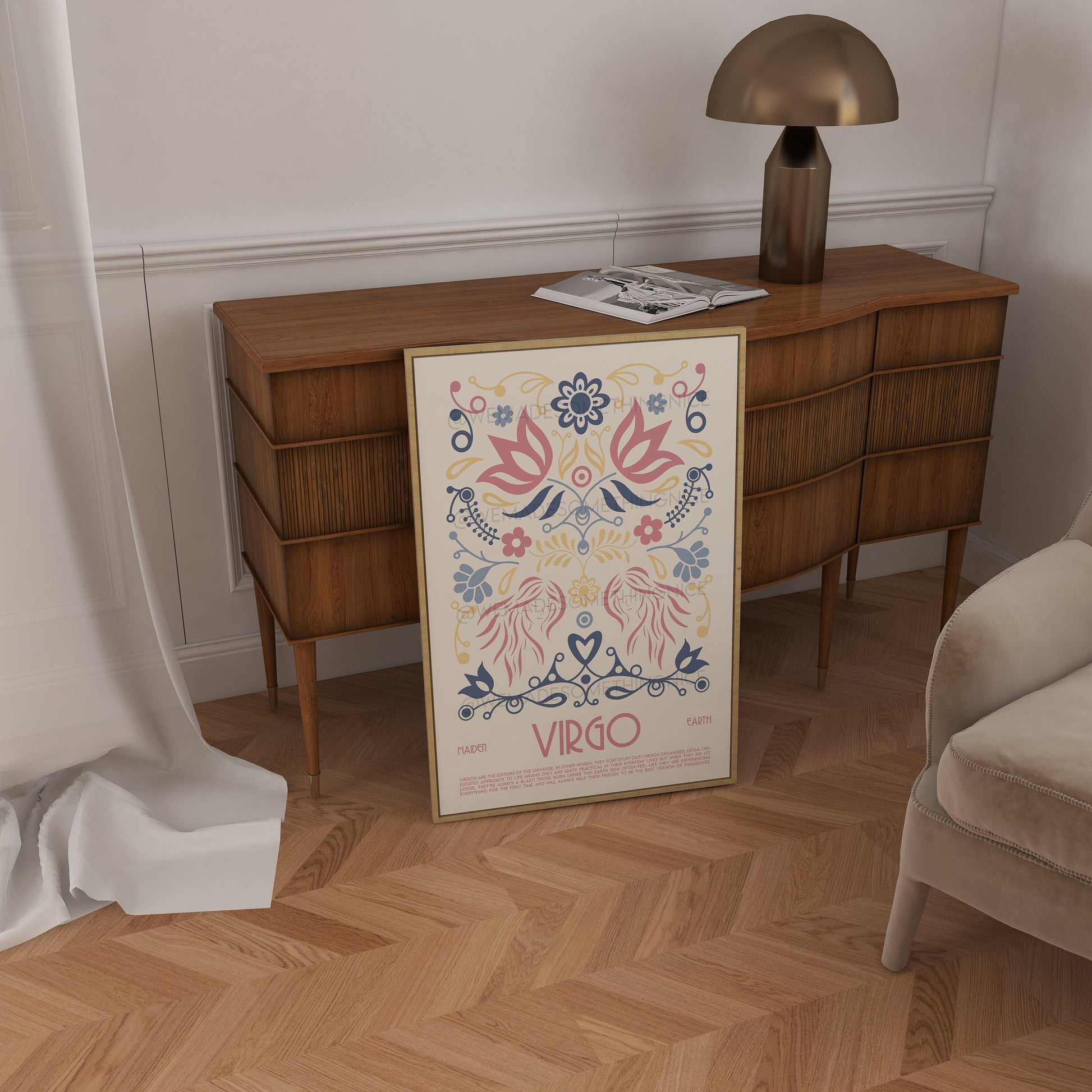 Virgo Poster, Horoscope Print, Astrological Wall Art, Tarot, Exhibition Poster, Zodiac Poster, Birthday Present, Boho, Housewarming, Bedroom