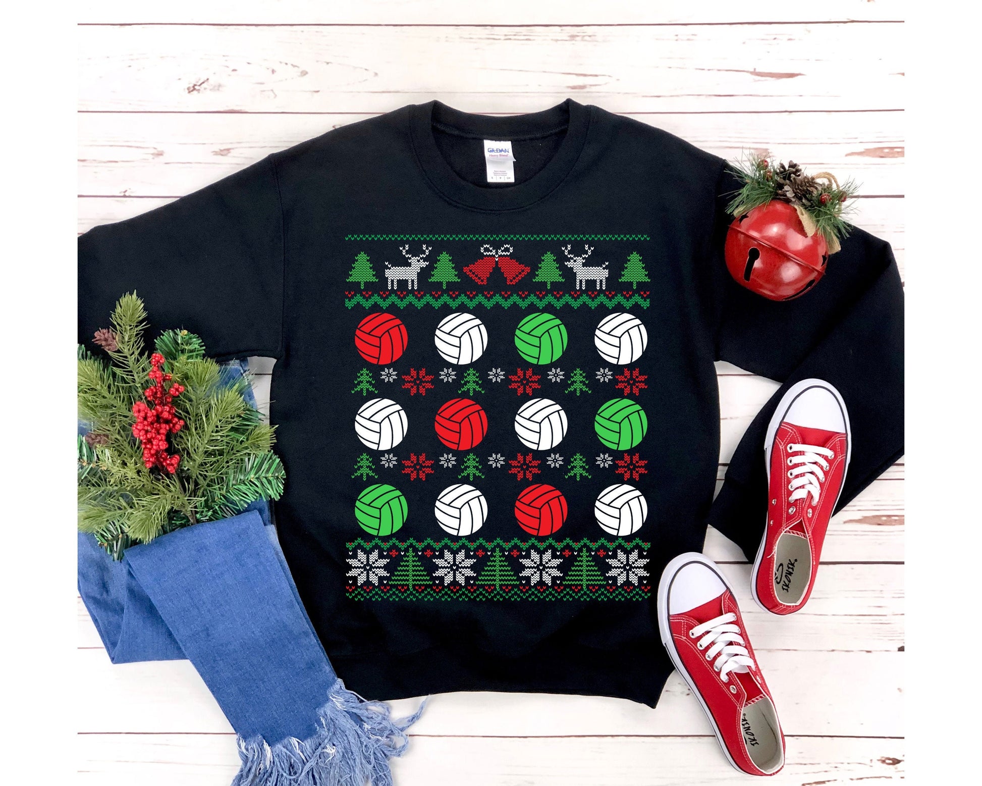 Volleyball Ugly Christmas Sweatshirt | Red White Green Volleyball Balls Shirt | Volleyball Player Gift | Matching Volleyball Team Coach
