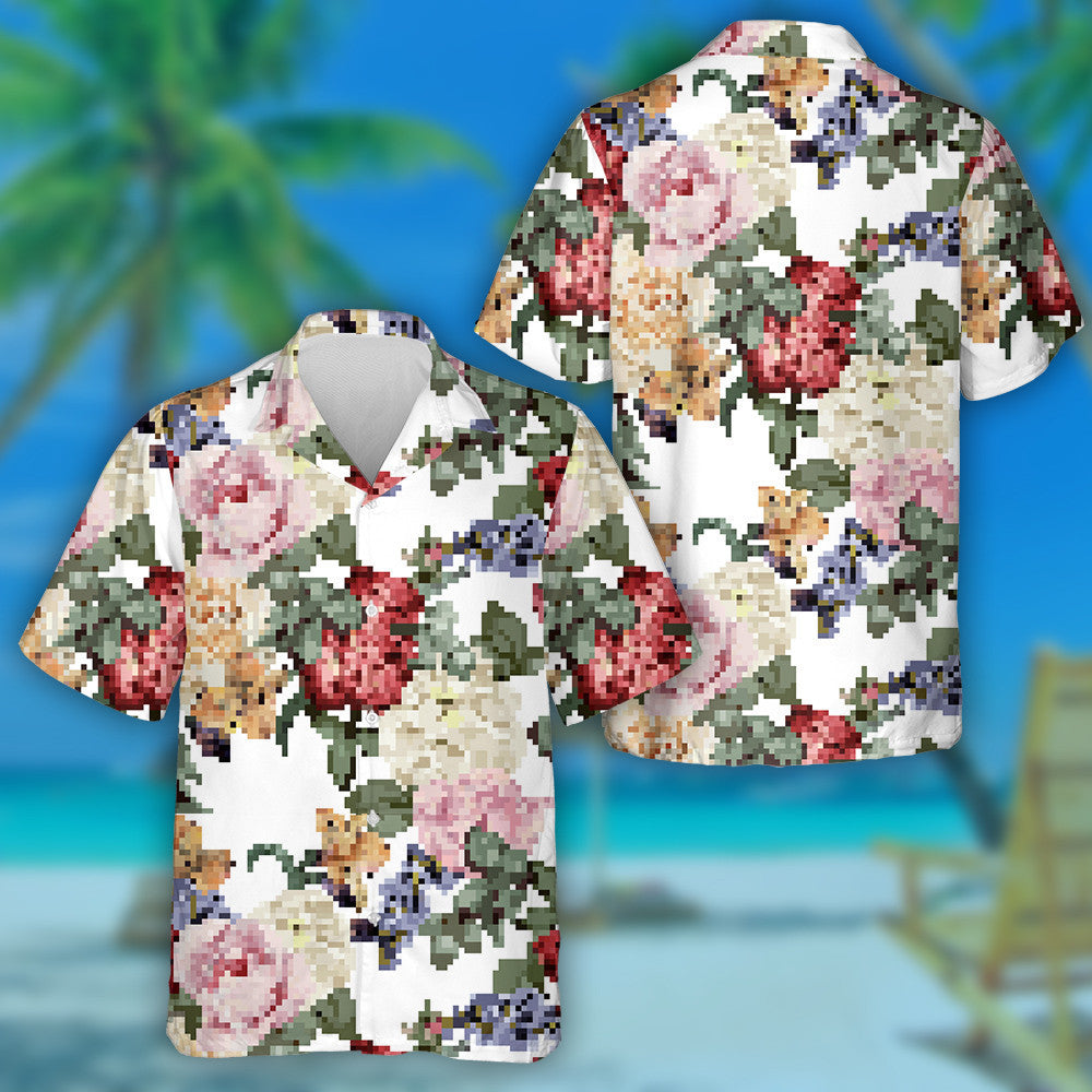 Brainse Bláthanna Dathúla Rósanna Uiscedhath Ar Chúlra Bán Léine Haváís, Bronntanas Léine Haváís, Bronntanas Nollag