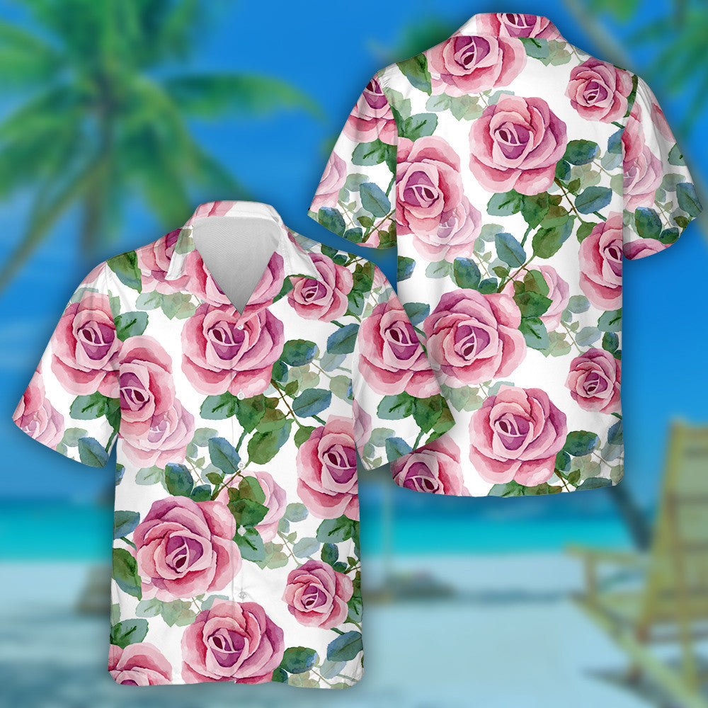 Péinteáil Uiscedhath Rósanna Bándearg Agus Patrún Duilleoga Glas Léine Haváís, Bronntanas Léine Haváís, Bronntanas Nollag